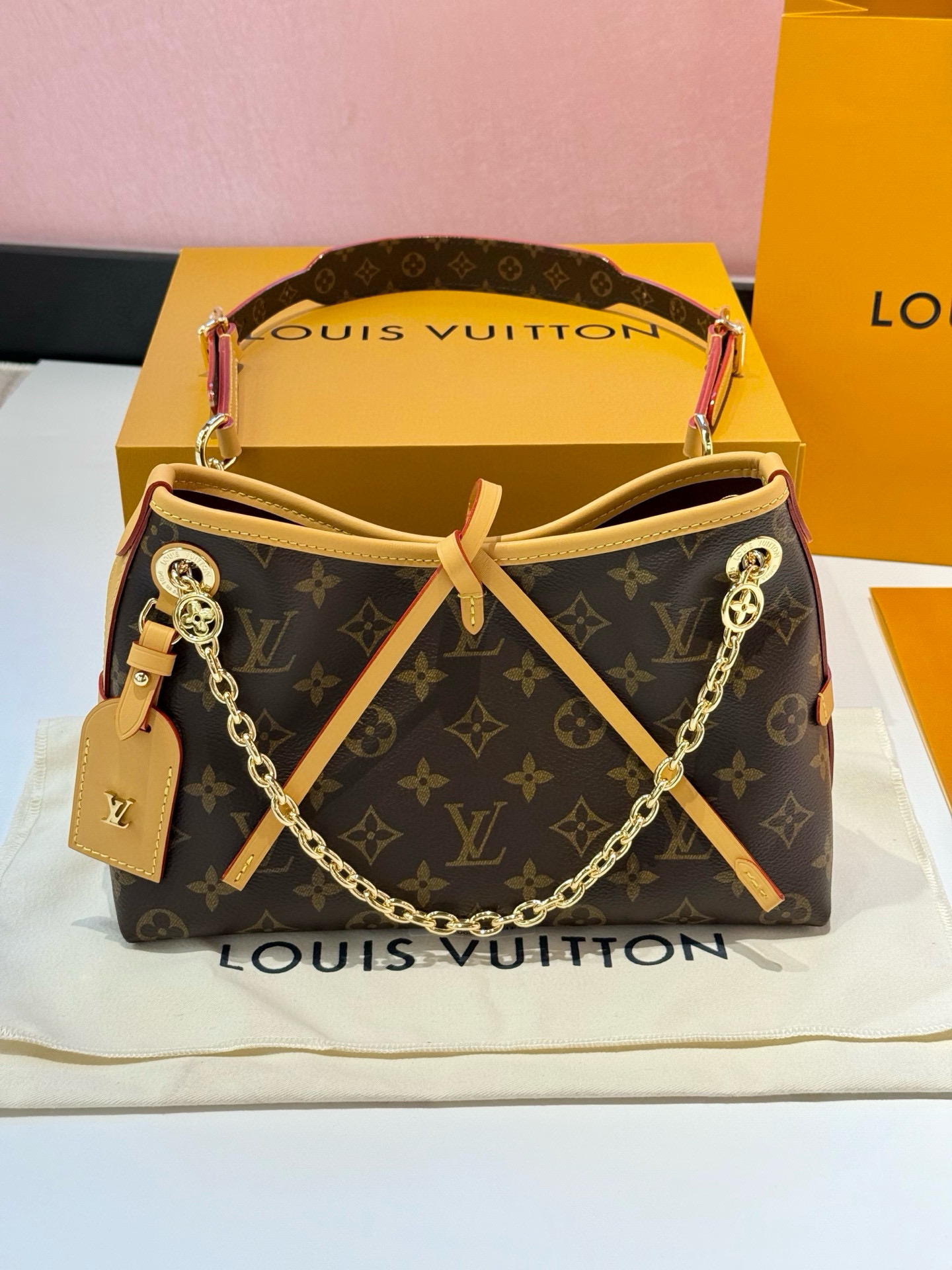 它可是 Carryall 家族的超新星,老花元素经典到不行,链条轻得不像话,肩带更是绝绝子,一面纯色一面老花,皮拼金属链条高级感爆棚,轻松吊打普通植鞣革肩带。腋下、手拿、斜挎、单肩各种背法随意切换!搭配难题一键解决。
