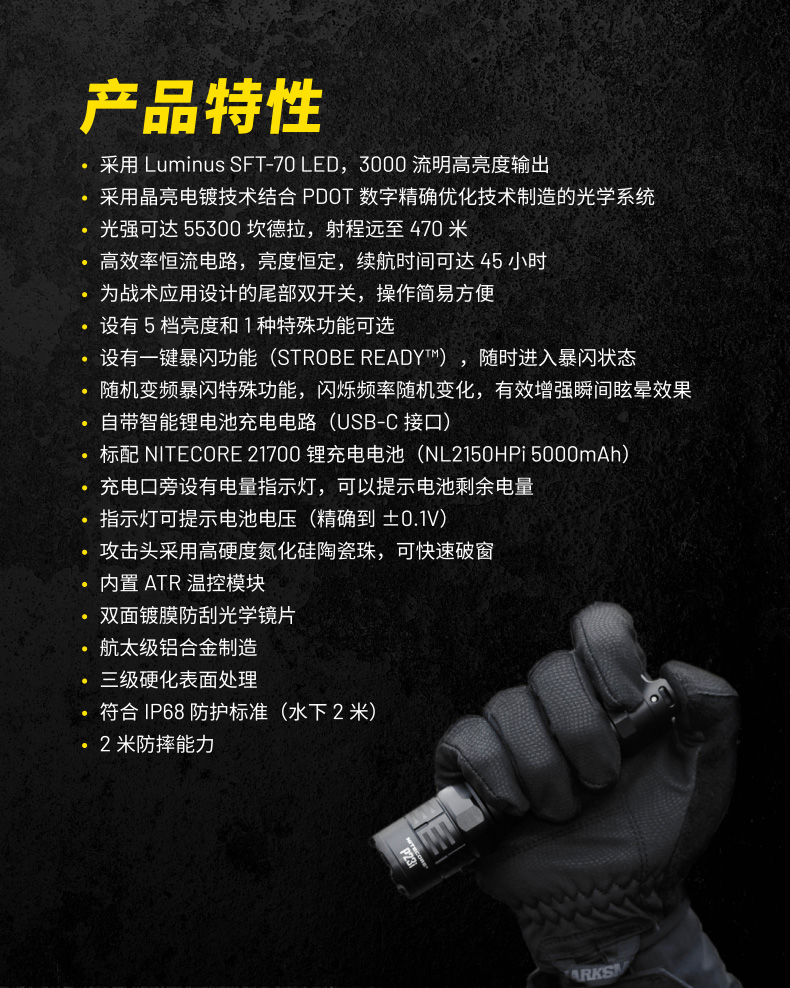 NITECORE 奈特科尔照明产品是全球众多国家军队、警察及执法人员的标准装备,也是各国专业户外运
