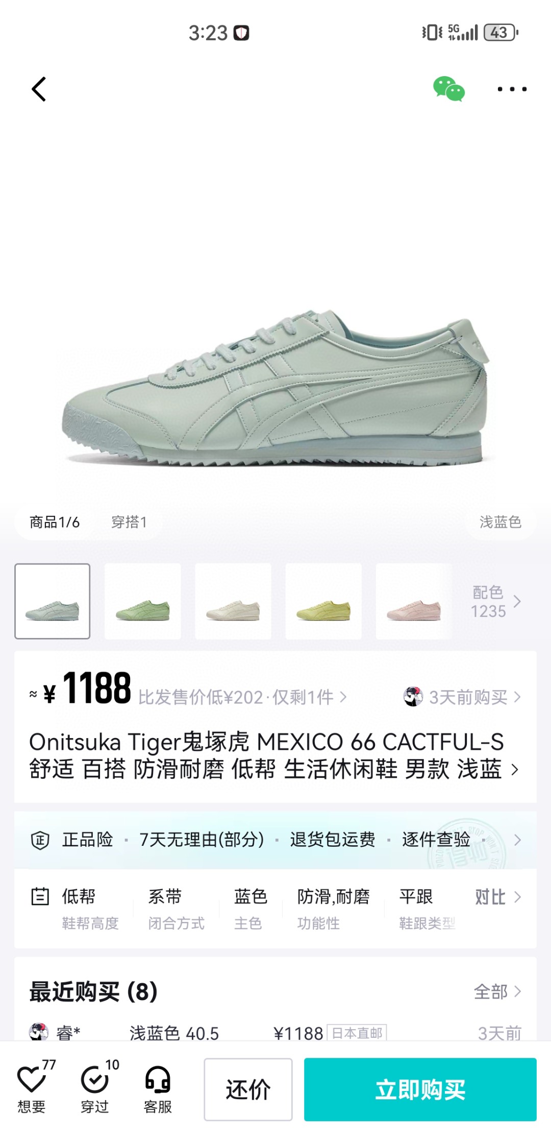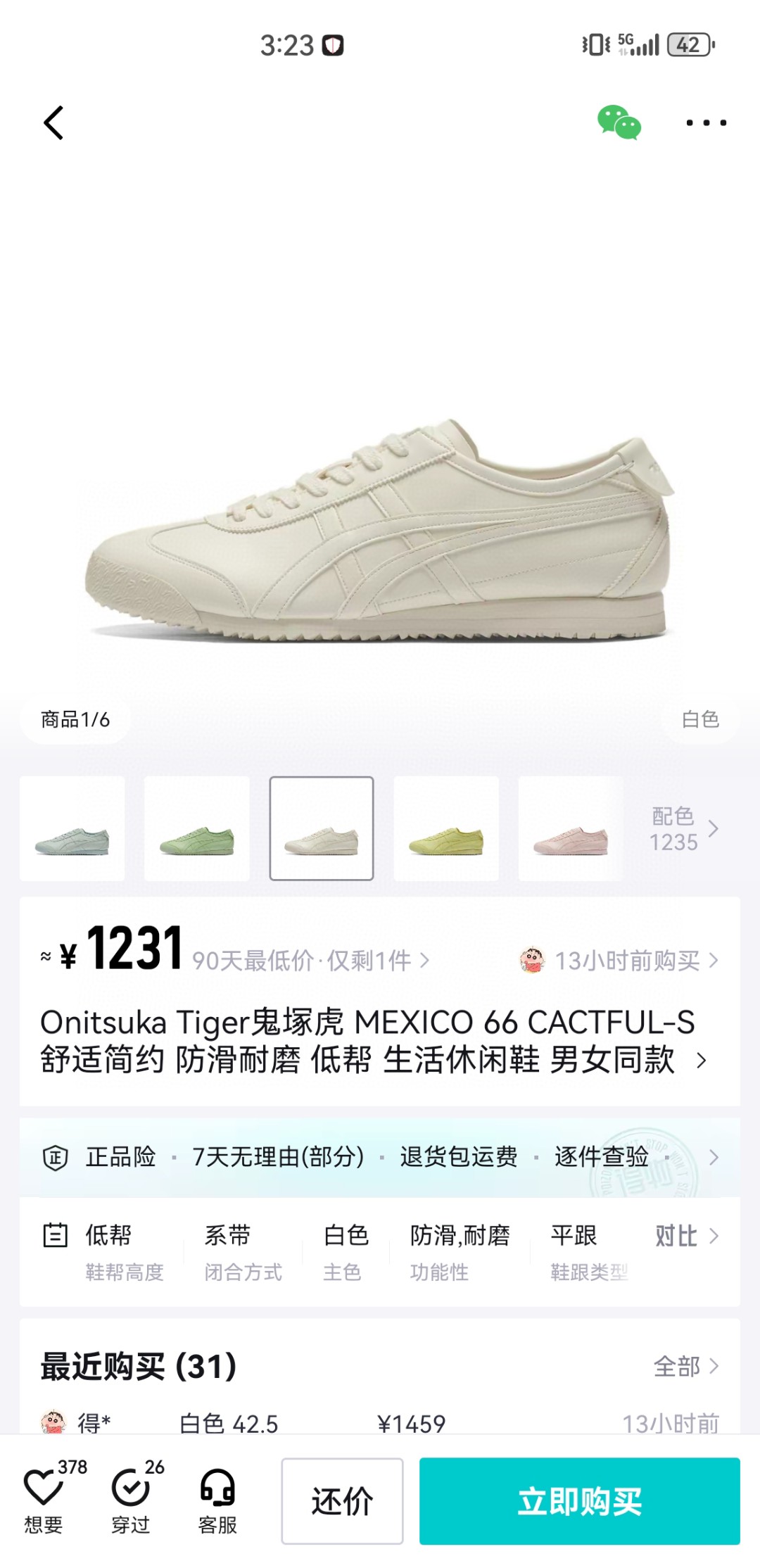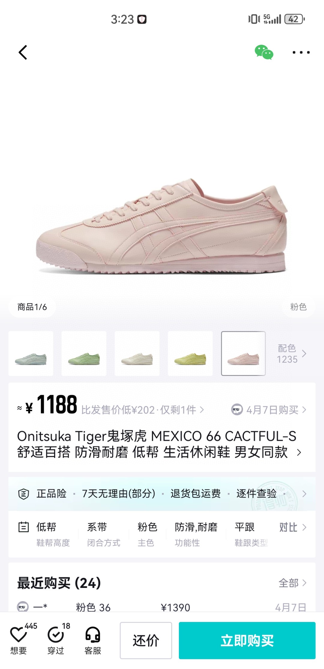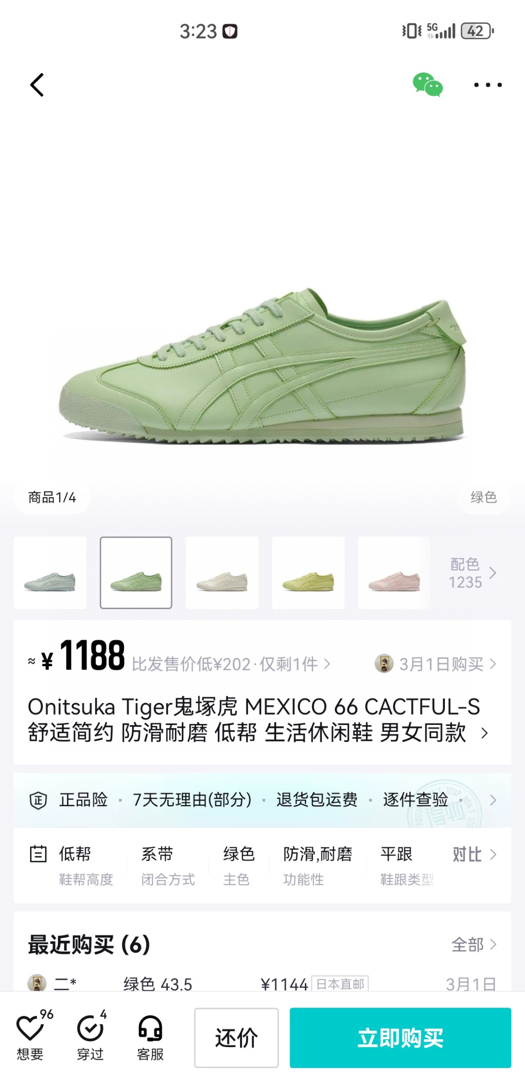先来看看鬼塚虎仙人掌系列MEXICO 66 CACTFUL-S休闲鞋