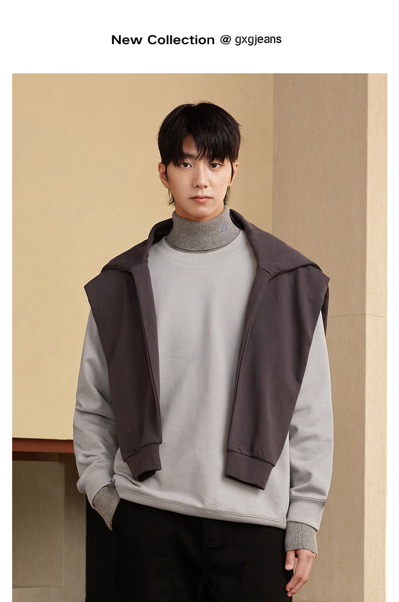 gxgjeans男装秋季宽松套头上衣刺绣圆领卫衣男时尚卫衣