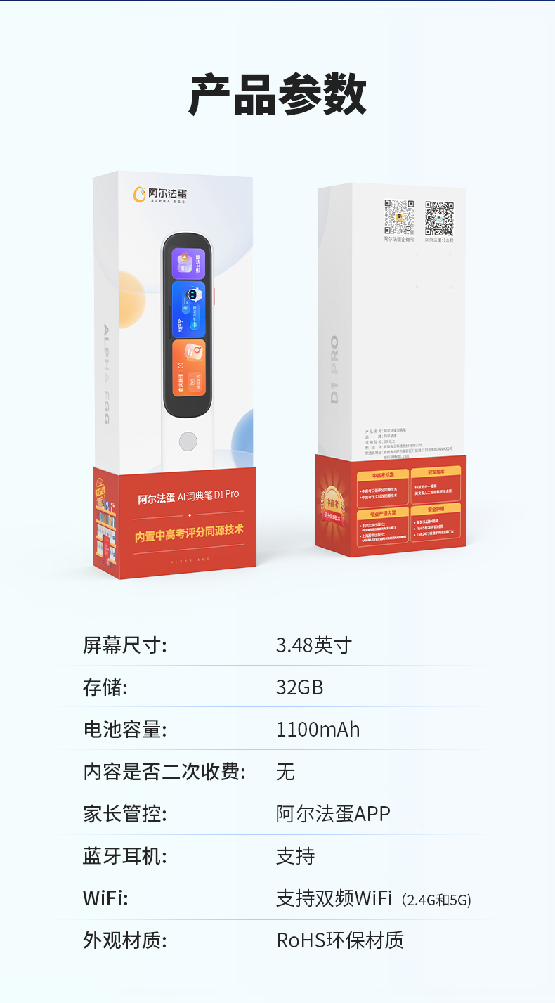 阿尔法蛋词典笔D1Pro点读笔英语学习翻译神器 阿尔法蛋电子词典翻译笔扫描笔 翻译机学习笔单词笔扫读笔