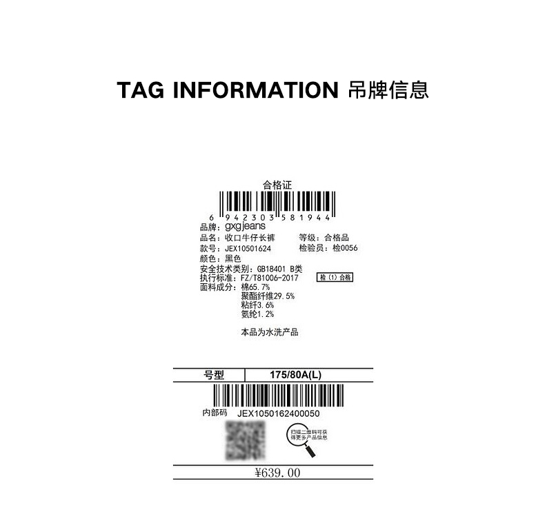 gxg.jeans男装冬季热卖收口牛仔长裤JEX10501624