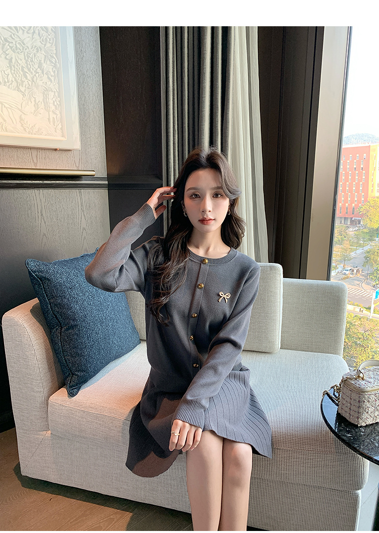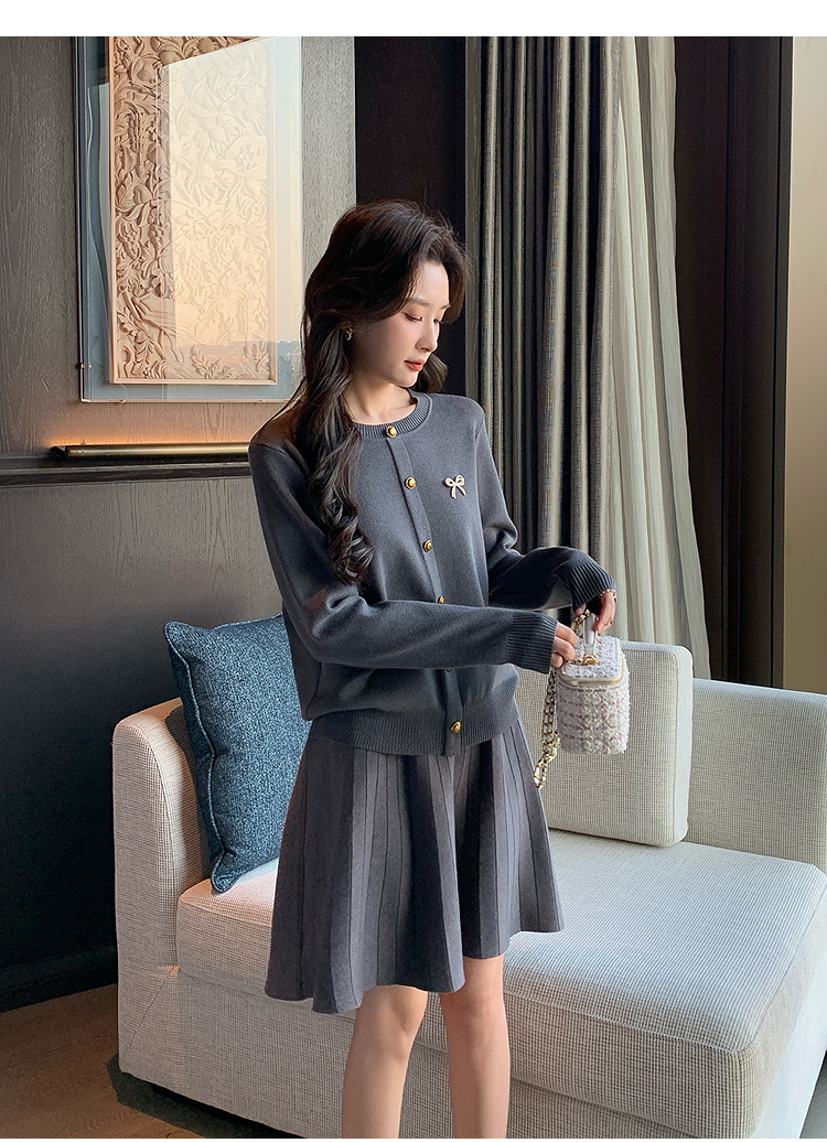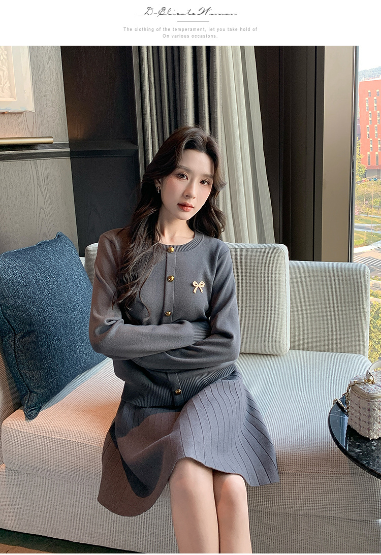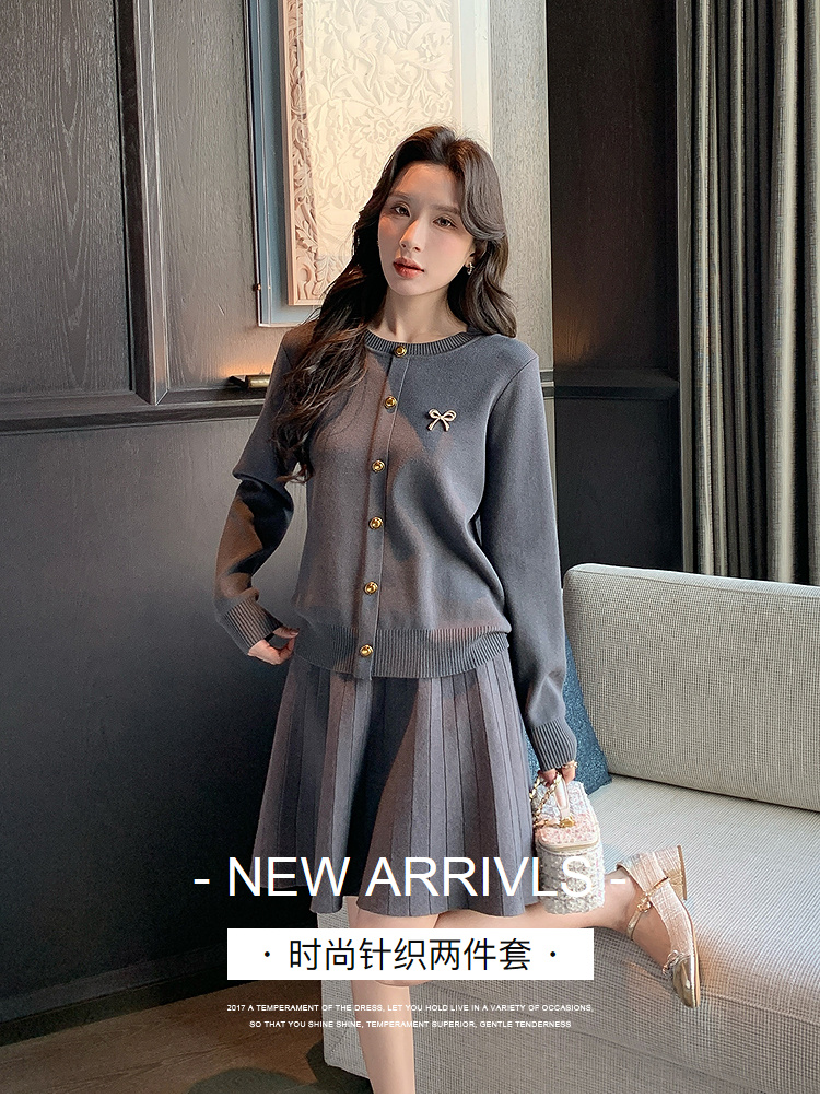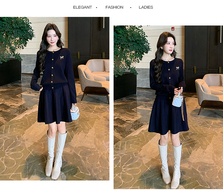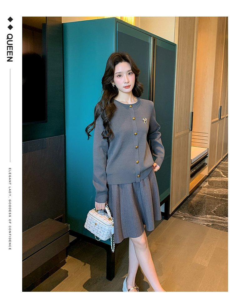 奢姿大码女装2025秋季简约通勤套装胖妹妹时尚上衣半裙针织两件套9643969275