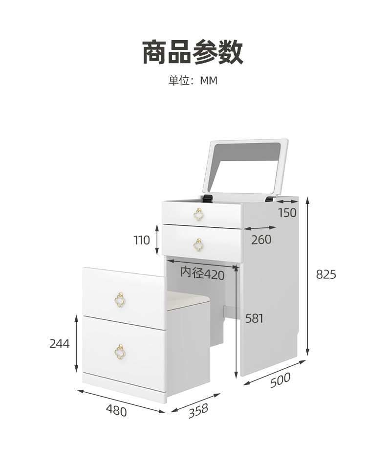 喜梦宝简约桌现代梳妆桌小户型卧室课桌家用半方糖系列