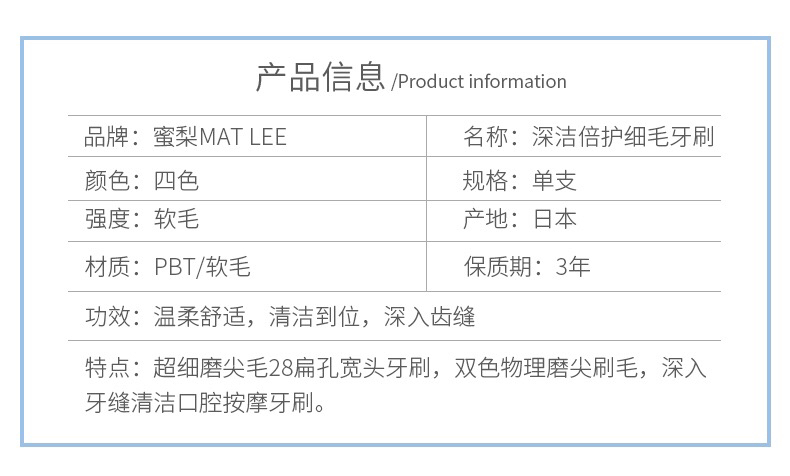 日本蜜梨MATLEE深洁宽头软毛牙刷-会员5折-颜色随机