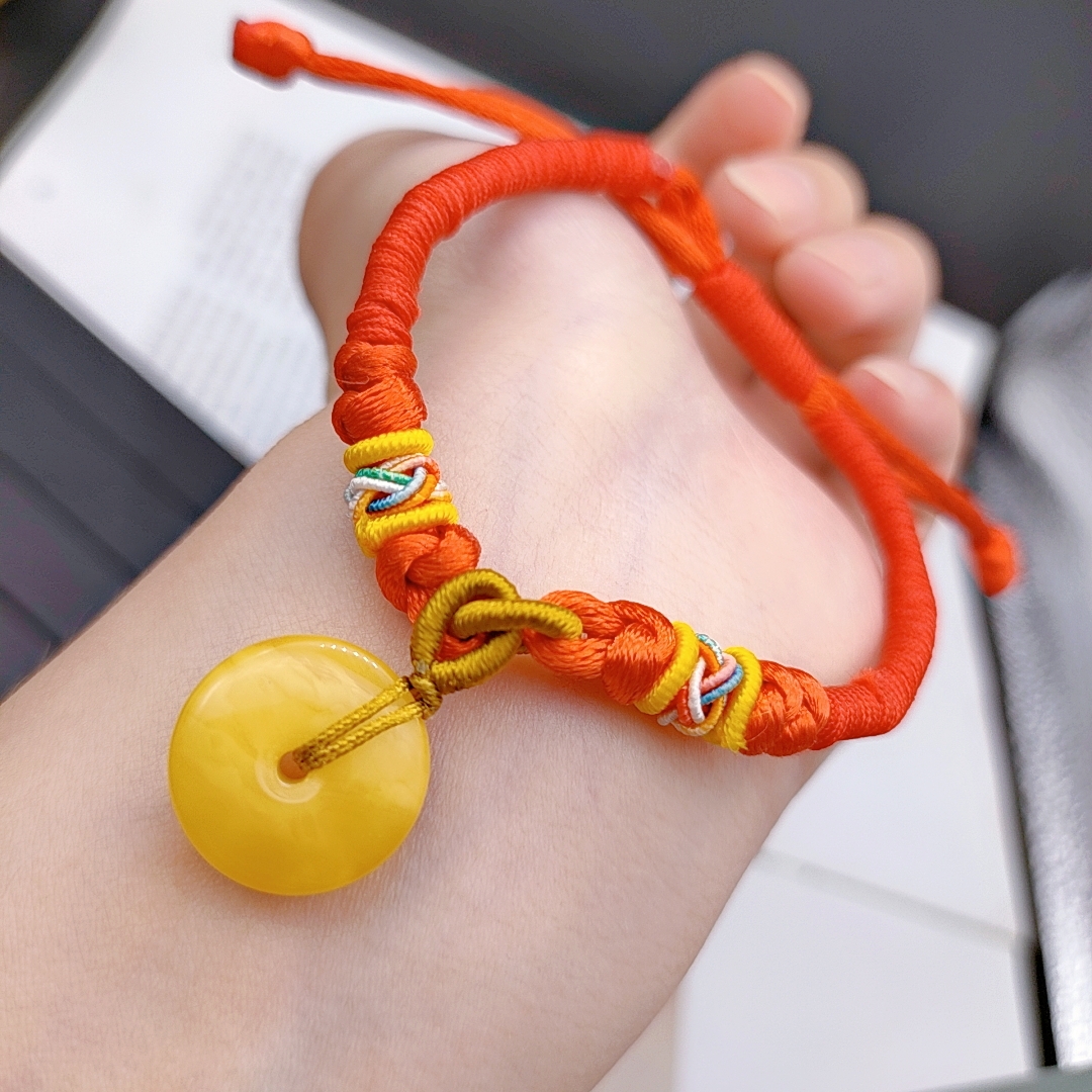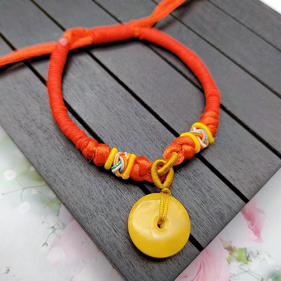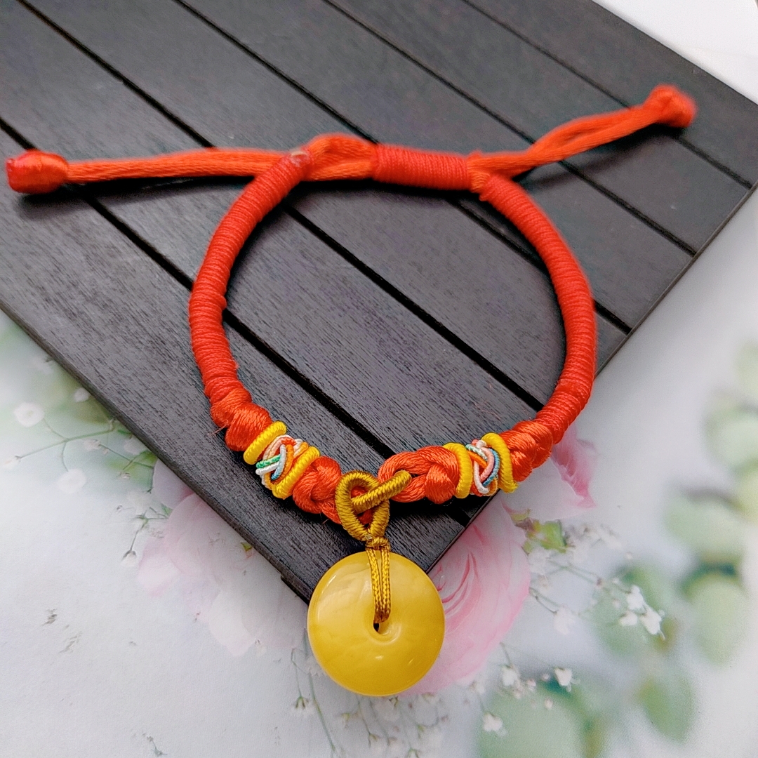 蜜蜡红绳平安扣手链