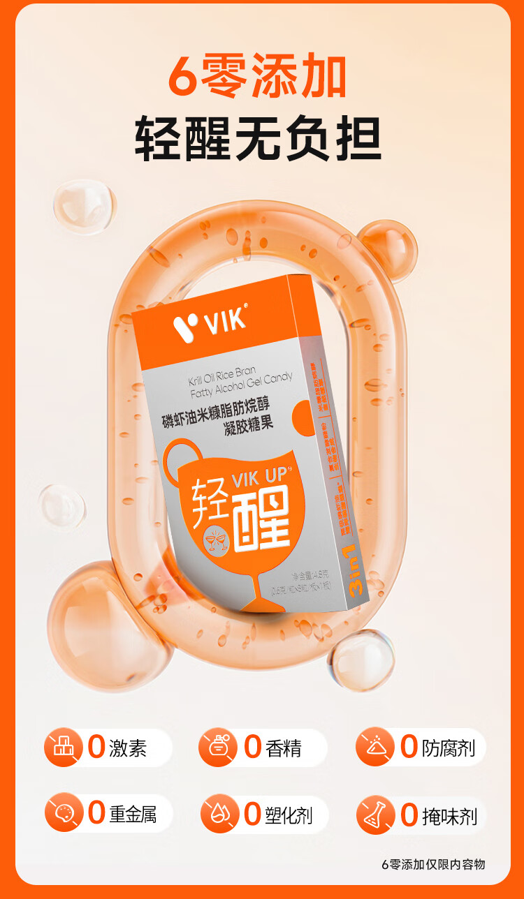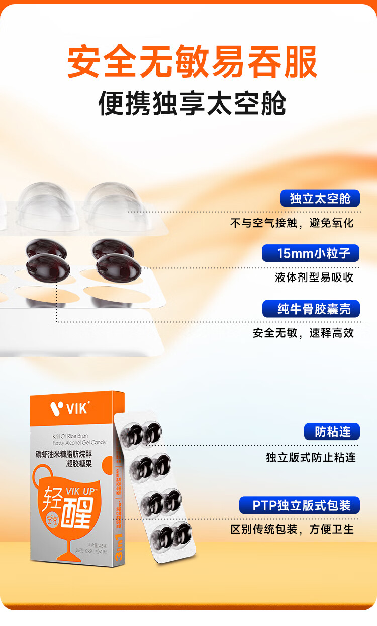 VIK逢时 轻醒磷虾油进口原料双专利应酬酒局解酒8粒*10盒装