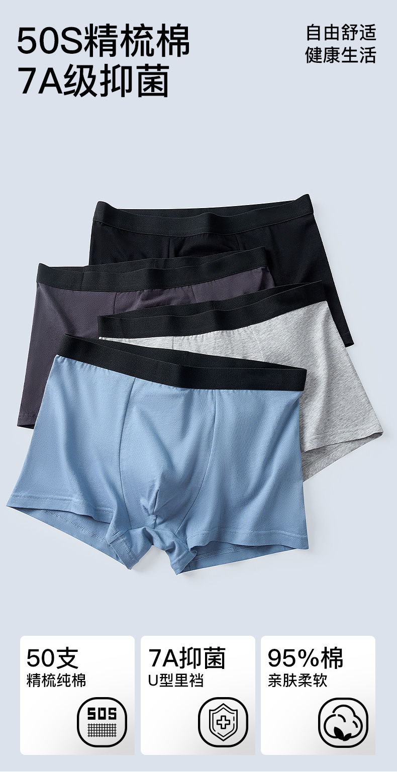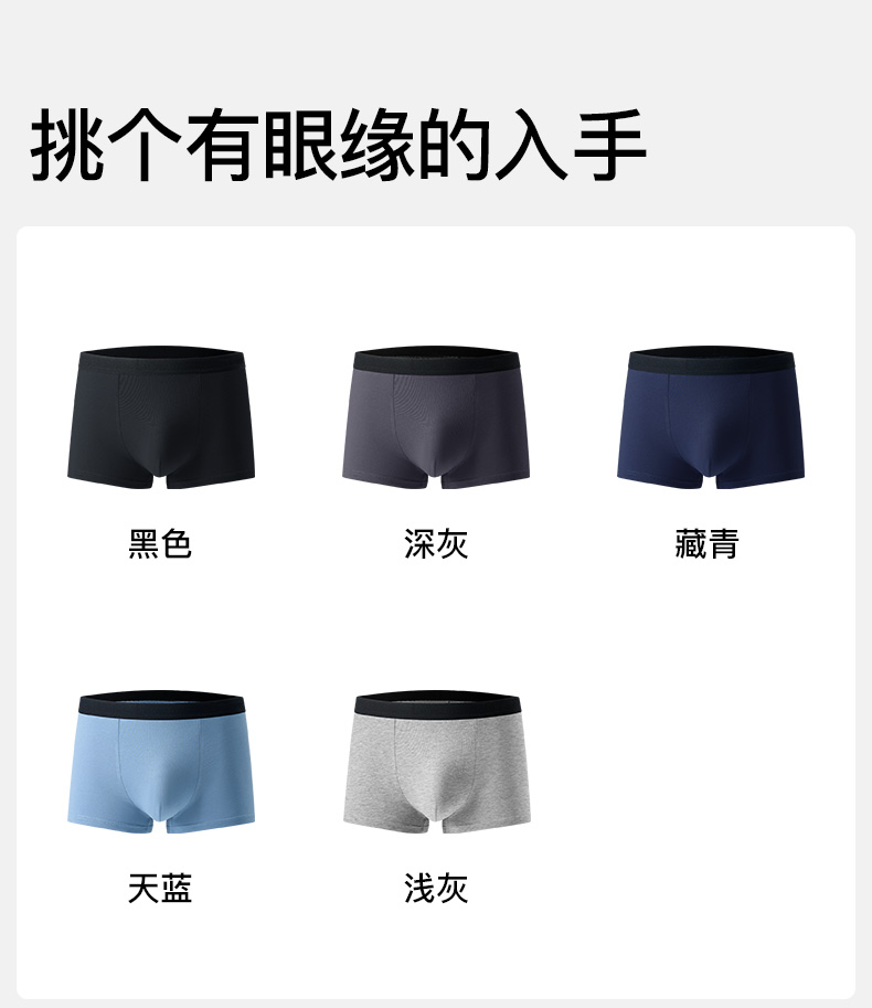 【热卖推荐】I'd爱帝男士内裤透气棉弹力平角裤4条装