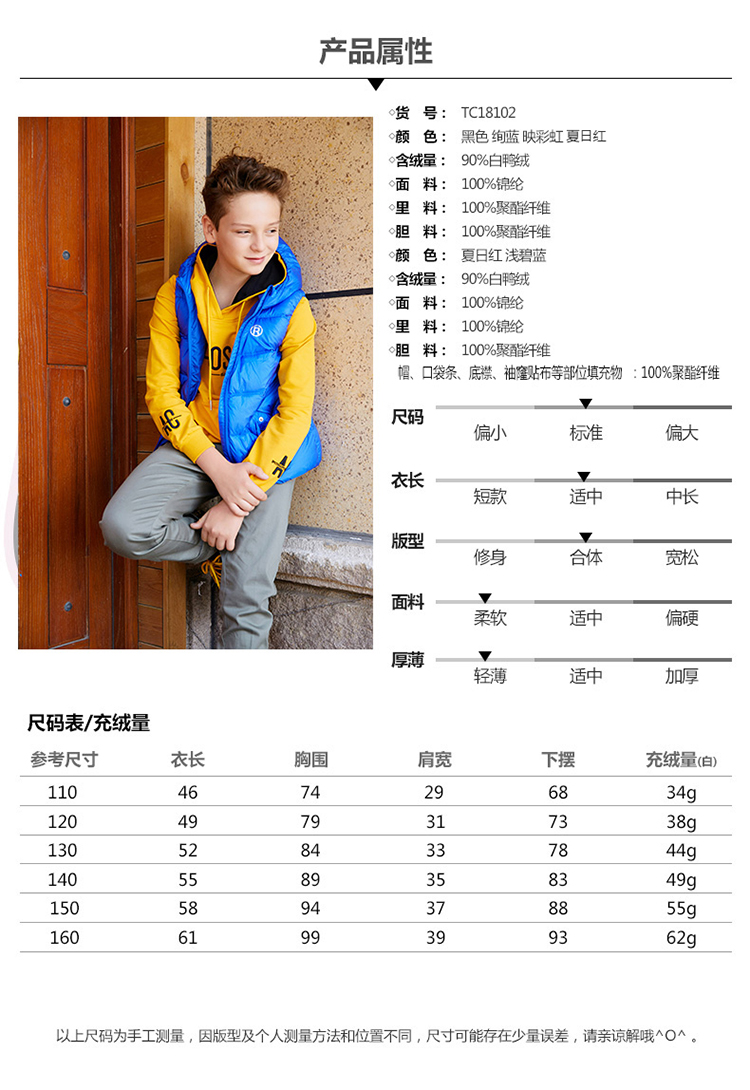 TC18102坦博尔羽绒服马夹男童中大童时尚保暖连帽羽绒外套马夹
