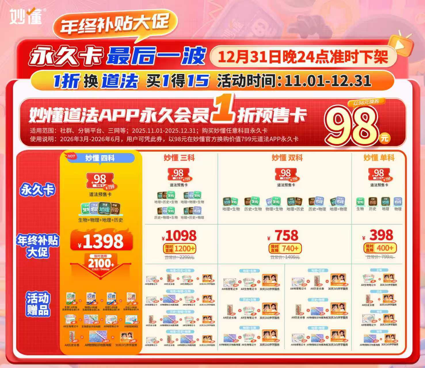 【妙懂】妙懂永久卡12.31 彻底下架!AR 实景学地理、动态看历史、3D 剖生物、实验解物理,一次付费,四科永久畅学,还送超硬核学习大礼包!