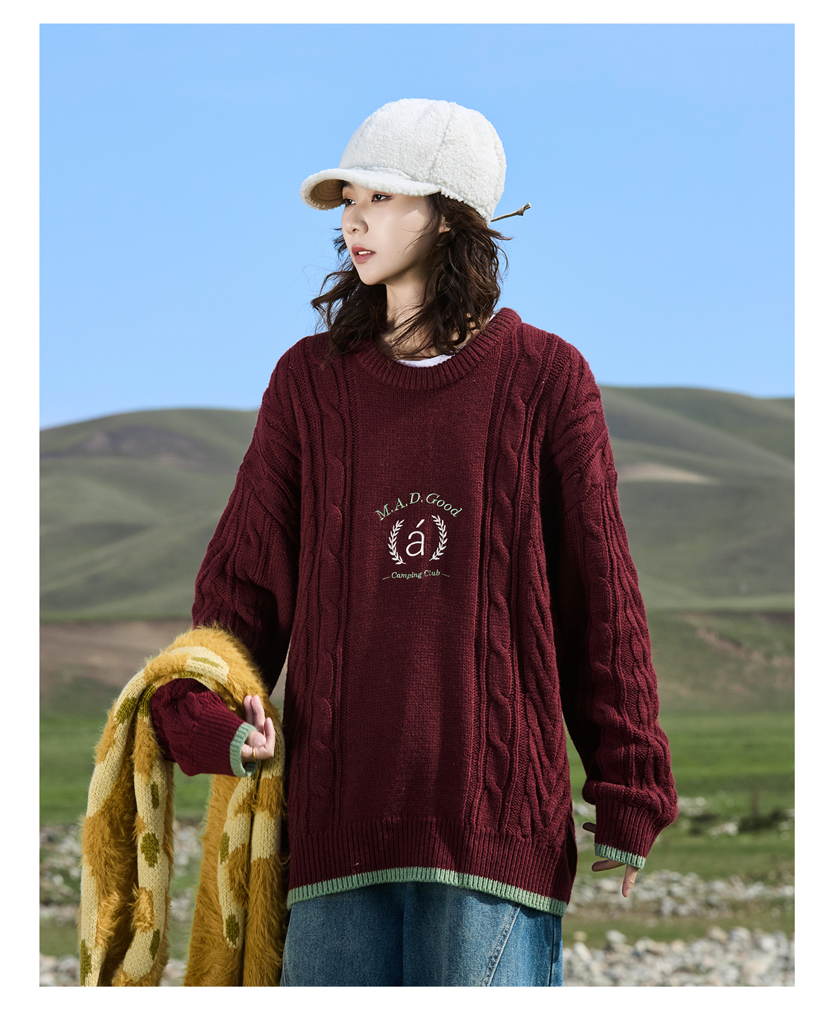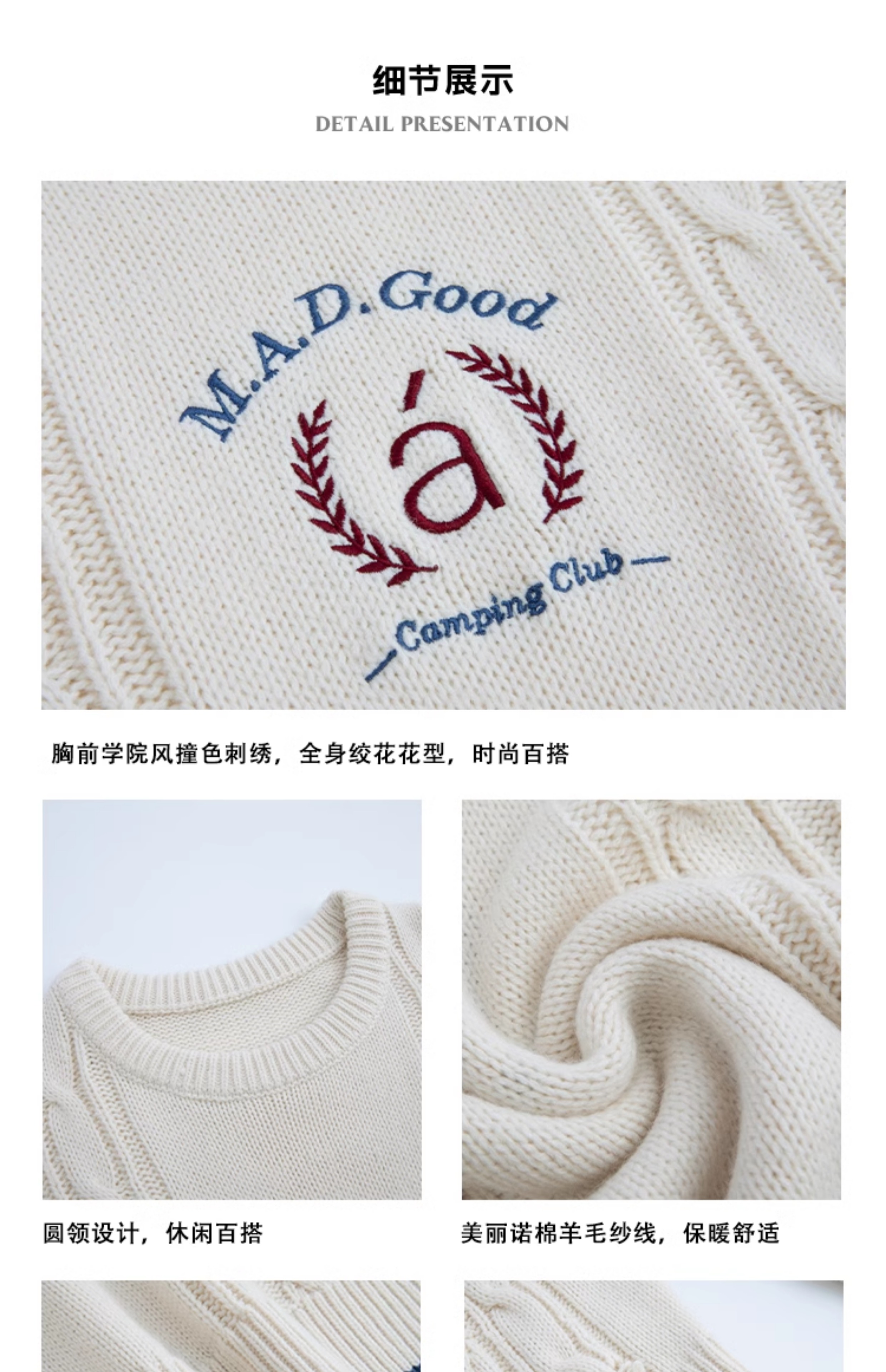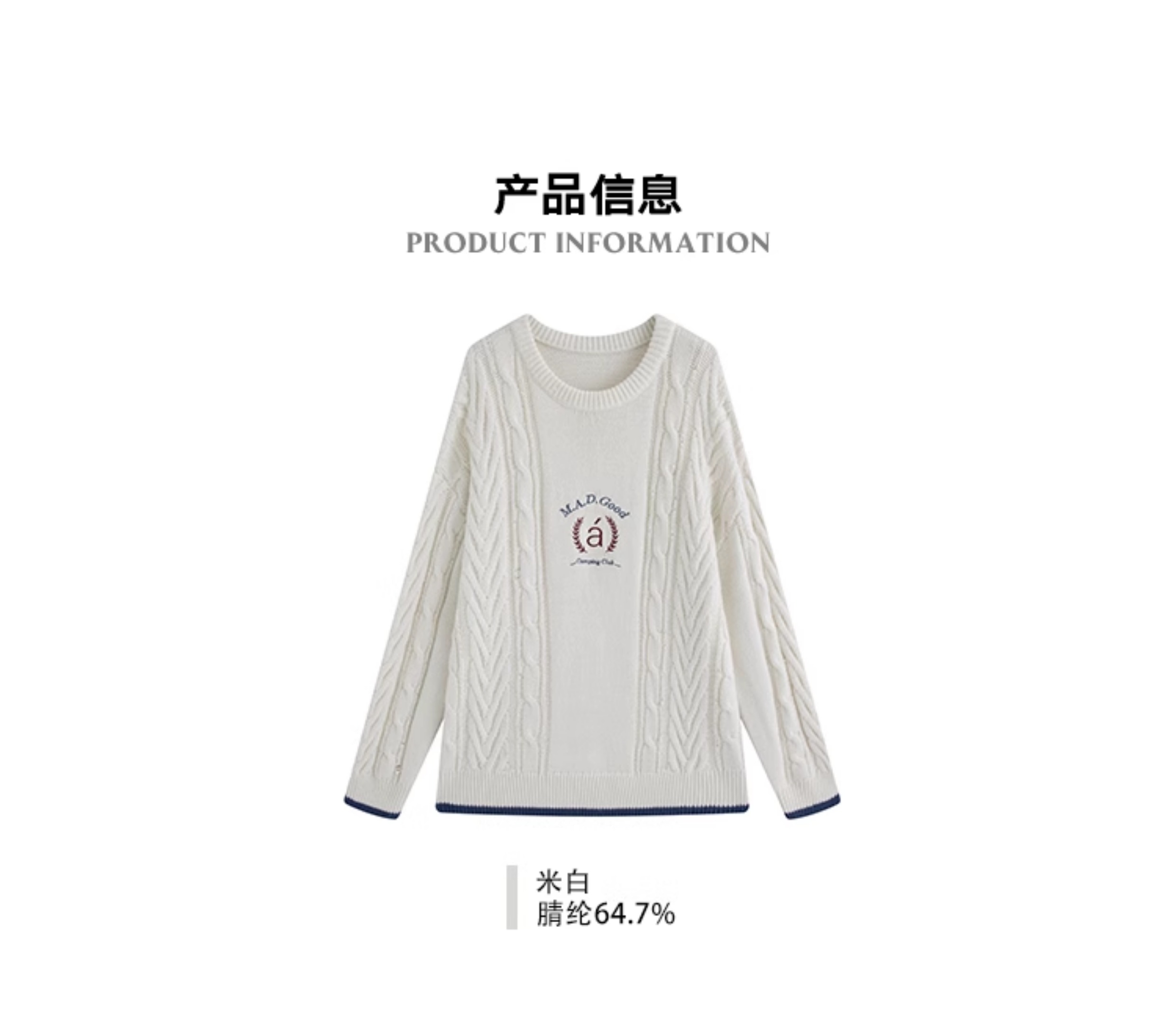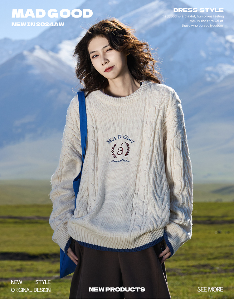 马得工地/ MDGDMY244474/学院绣花撞色罗纹毛衣