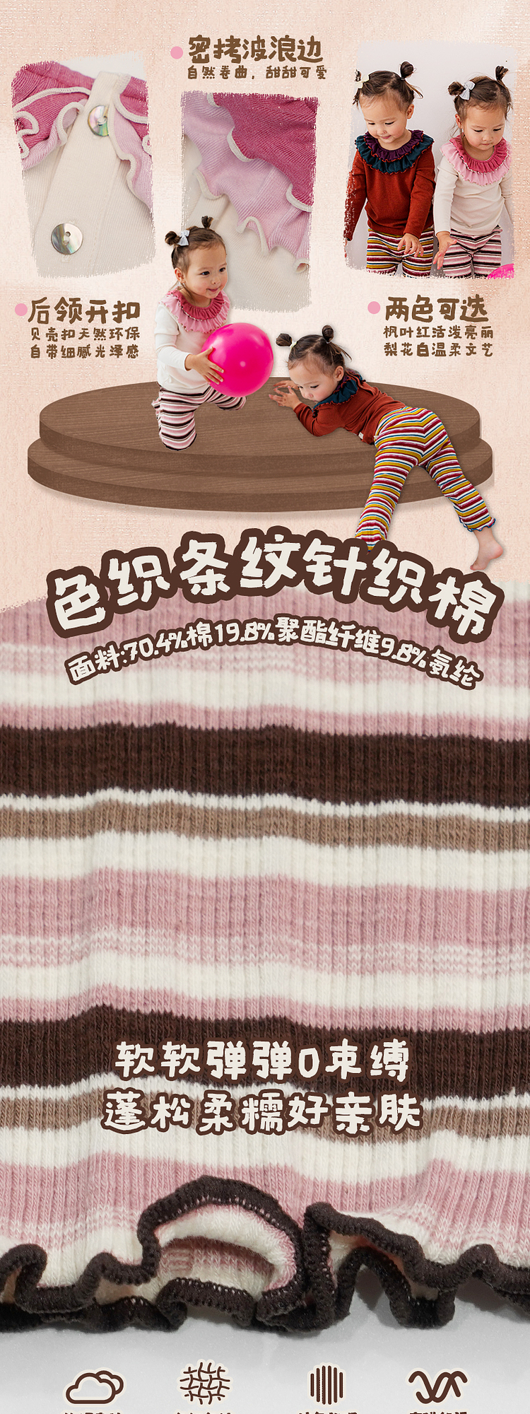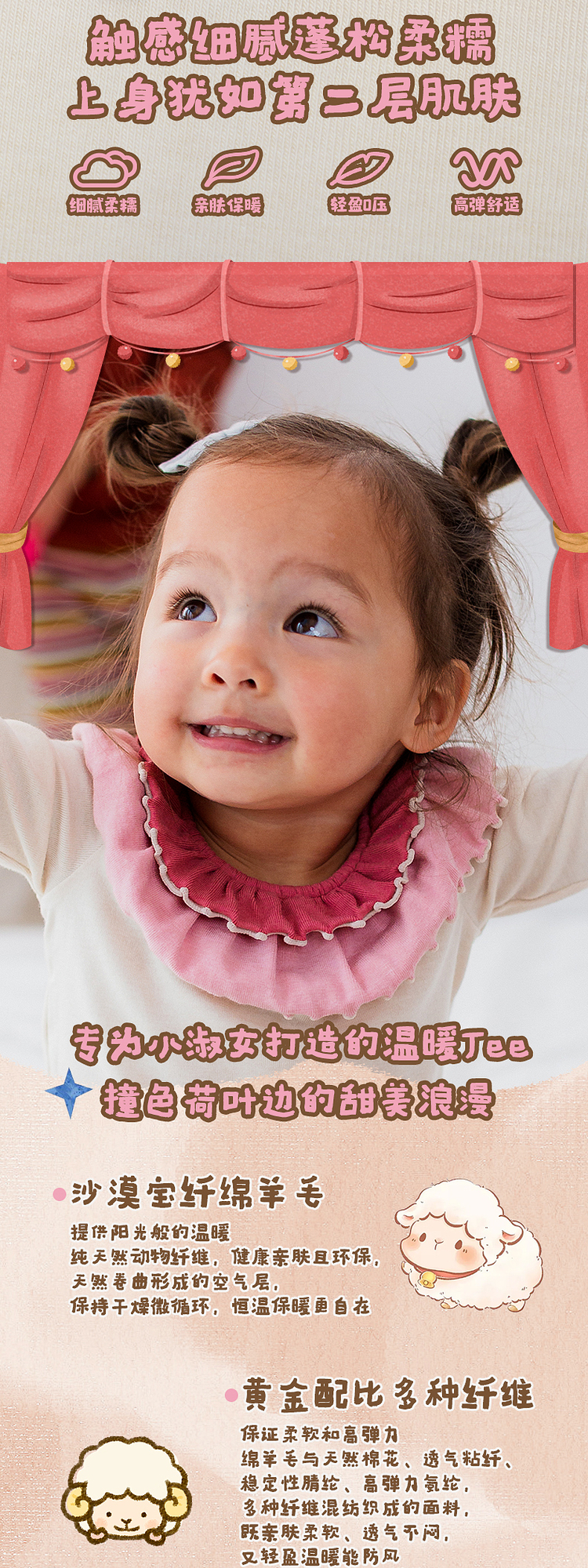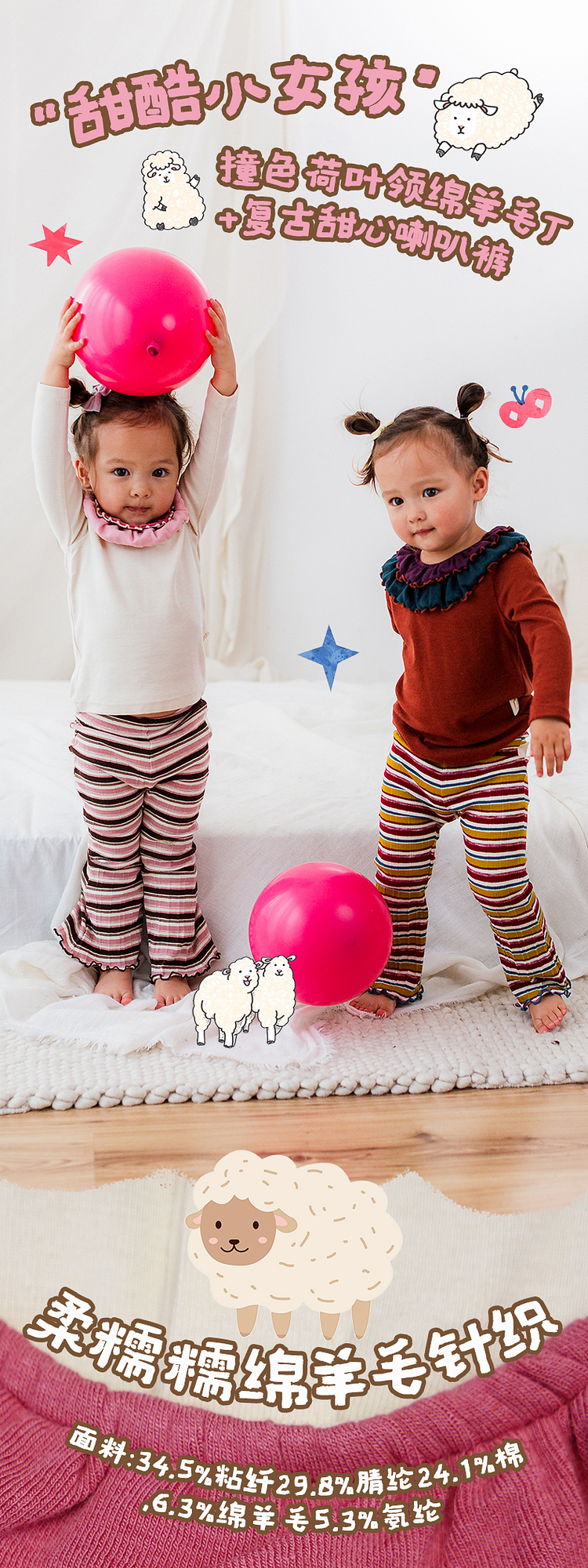 【云优选】lelejove北欧风女童长袖T恤25秋宝宝撞色含羊毛T恤女宝内搭上衣