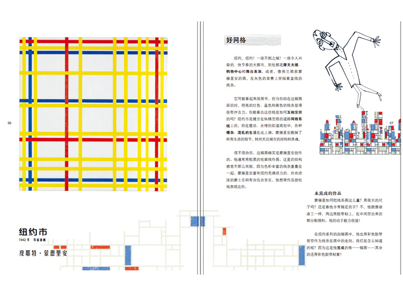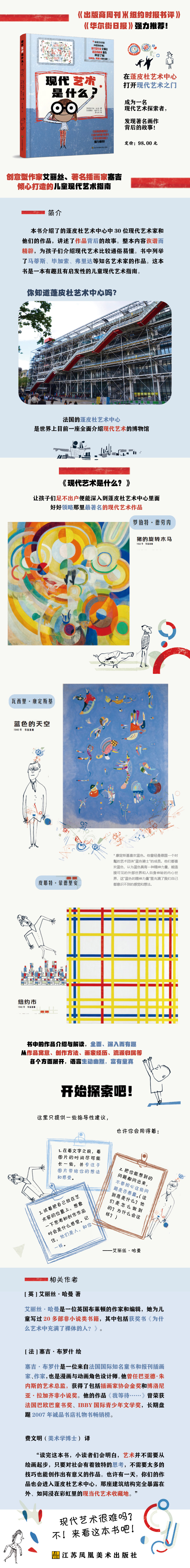 本书介绍了的蓬皮杜中心中30位现代艺术家和他们的作品,讲述了作品背后的故事。整本内容诙谐而精辟,为孩子们介绍现代艺术比较通俗易懂。书中列举了亨利·马蒂斯、巴勃罗·毕加索、弗里达·卡洛等知名艺术家的作品。这本书是一本有趣且有启发性的儿童现代艺术指南。