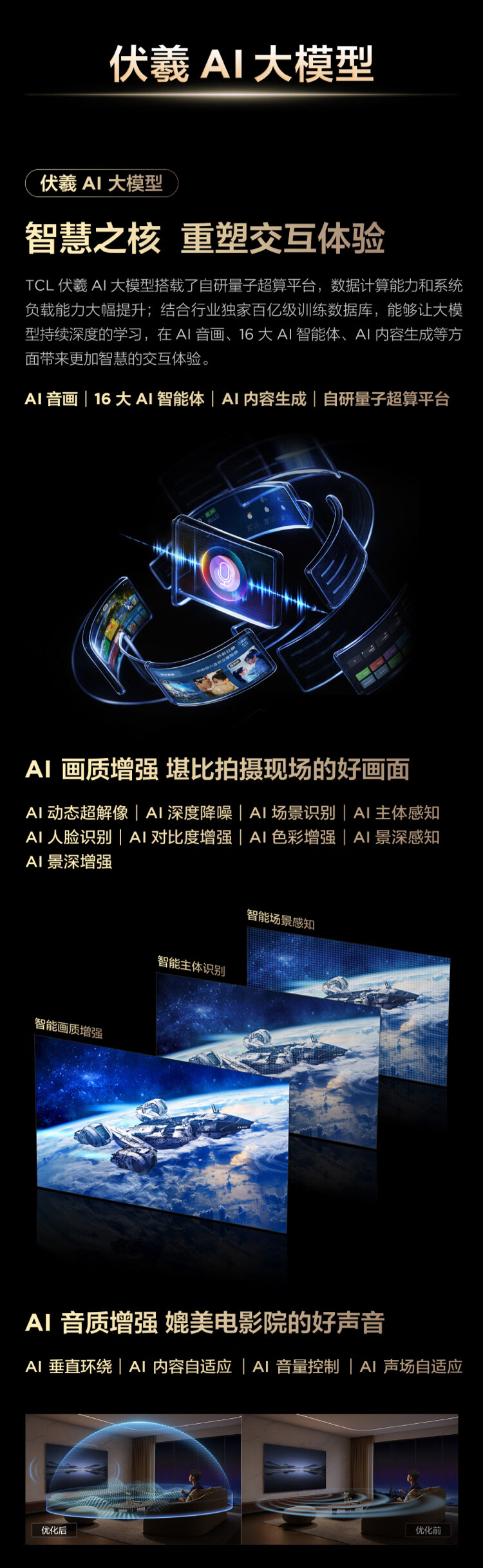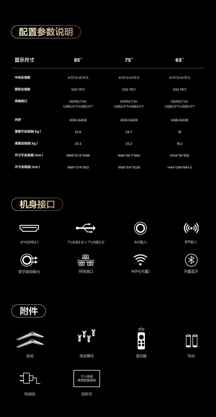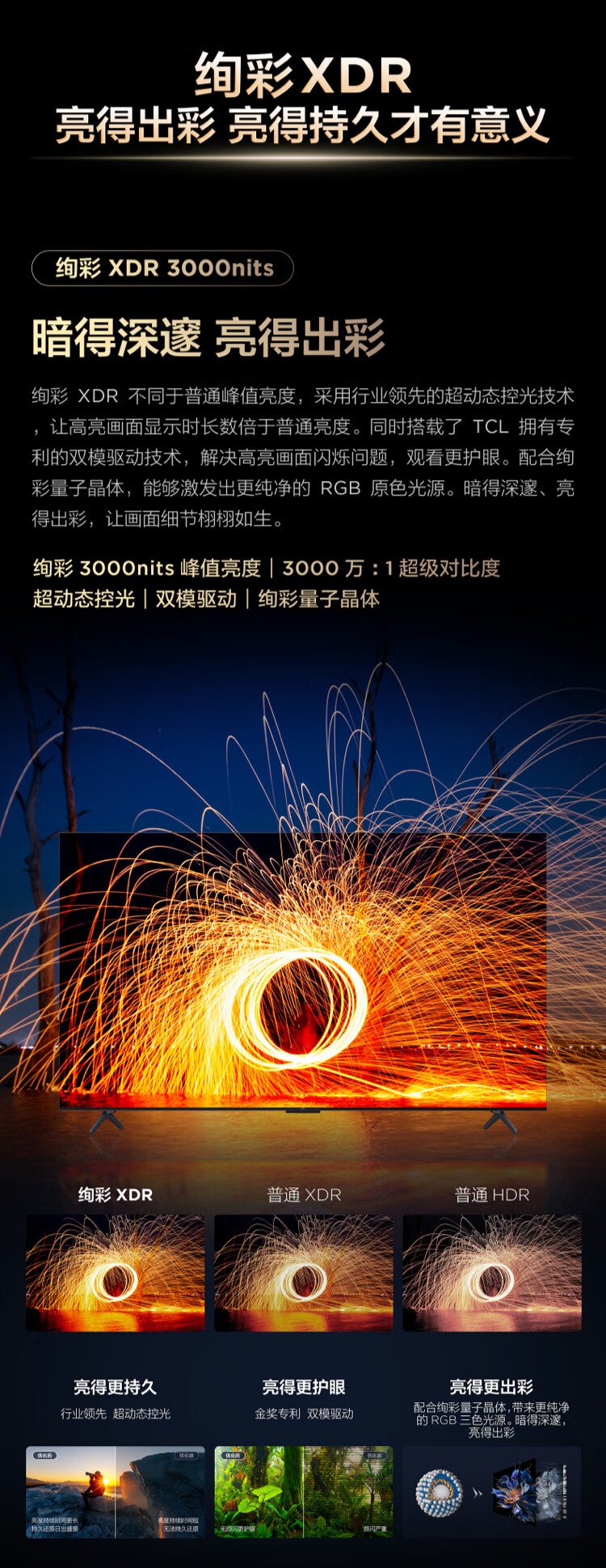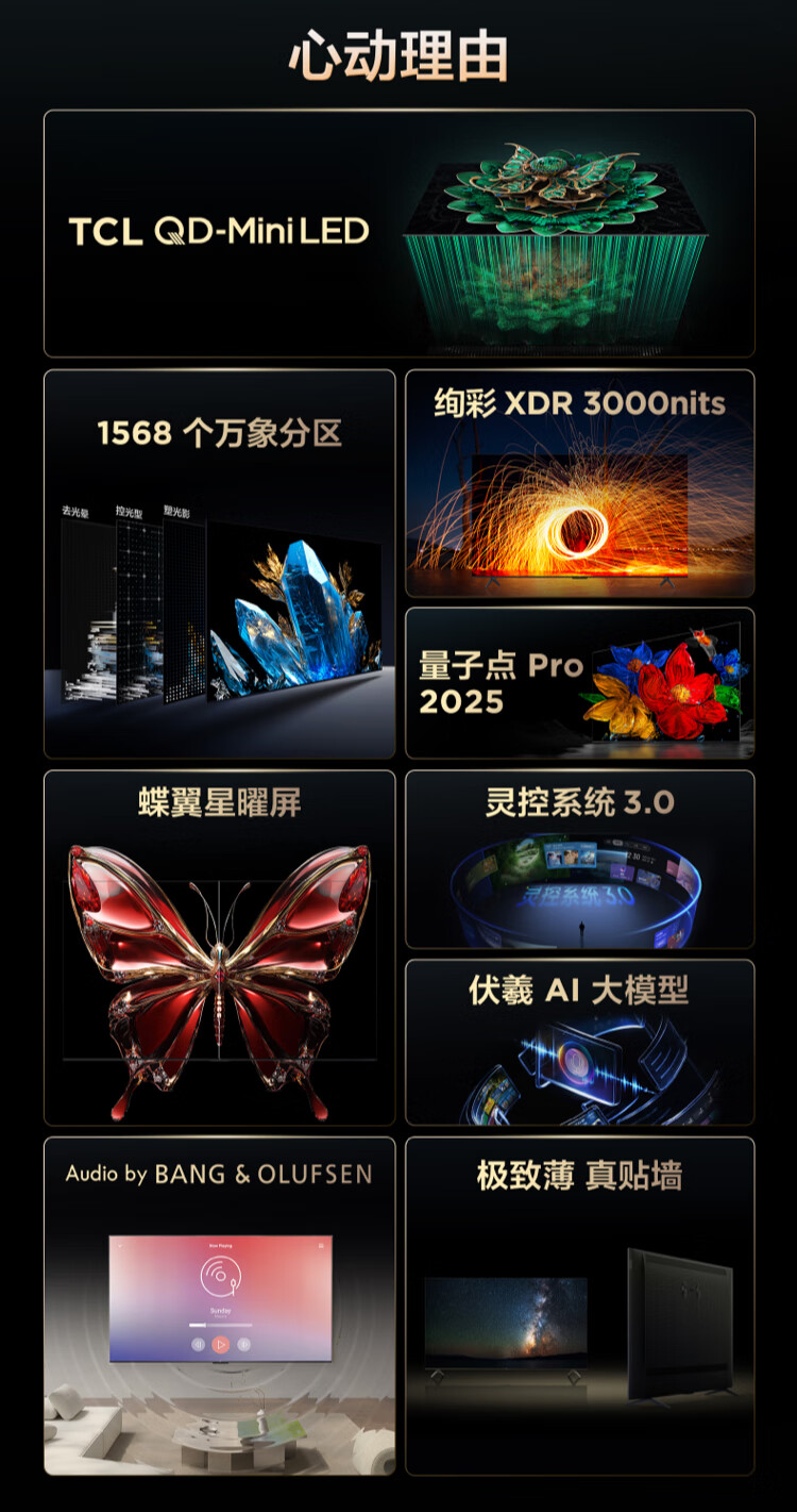 TCL电视_85C11K_QD-Mini_LED_1568个万象分区_绚彩XDR3000nits_Audio_by_Bang_&_Olufsen_85英寸