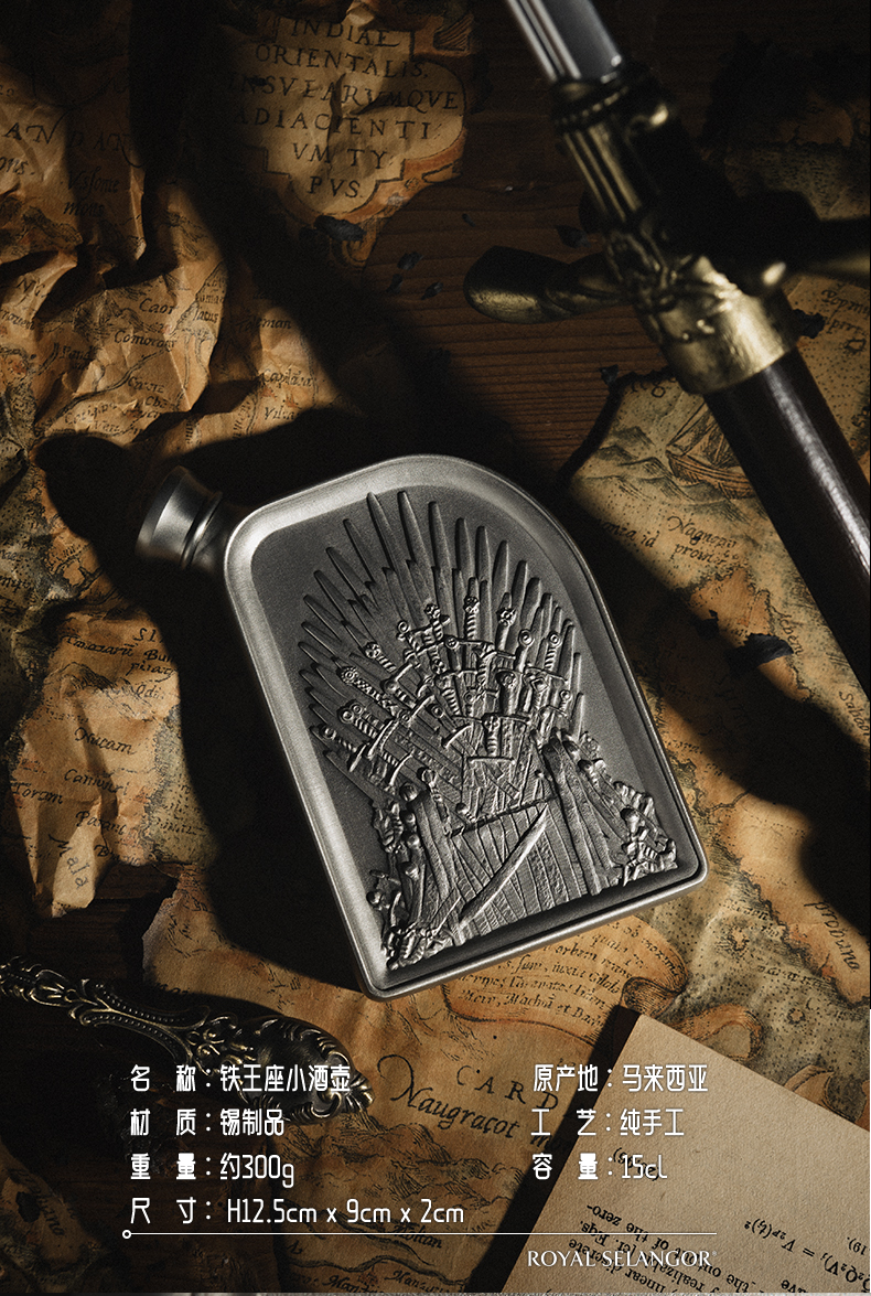 Royal Selangor皇家雪兰莪 铁王座烧瓶 权力的游戏授权联名锡制酒壶