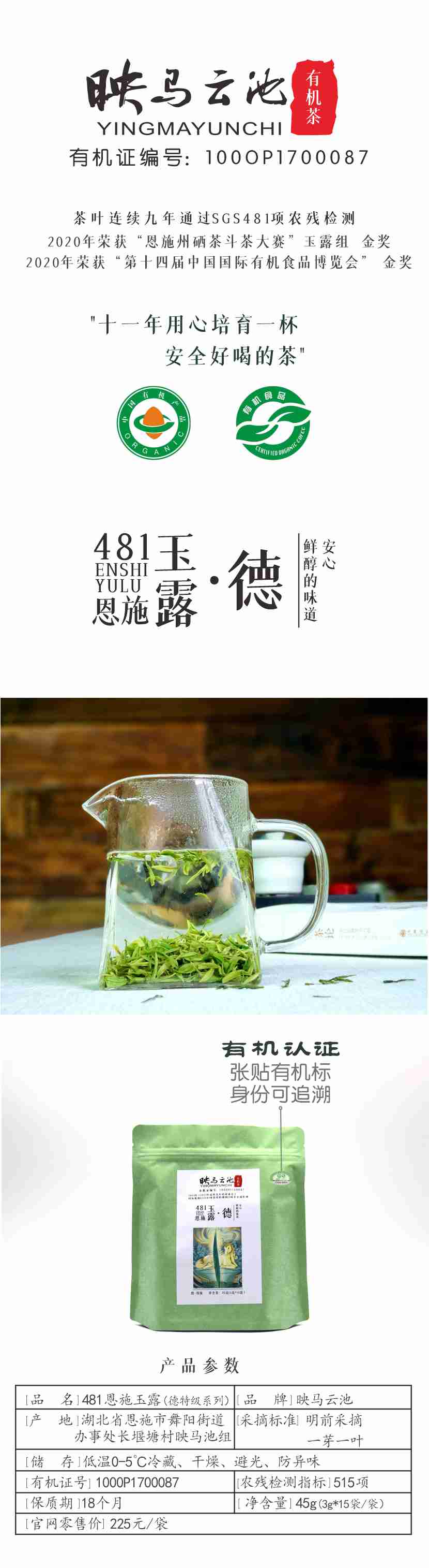 【恩施】映马云池有机绿茶481恩施玉露(特级)·德45g(3克*15袋)