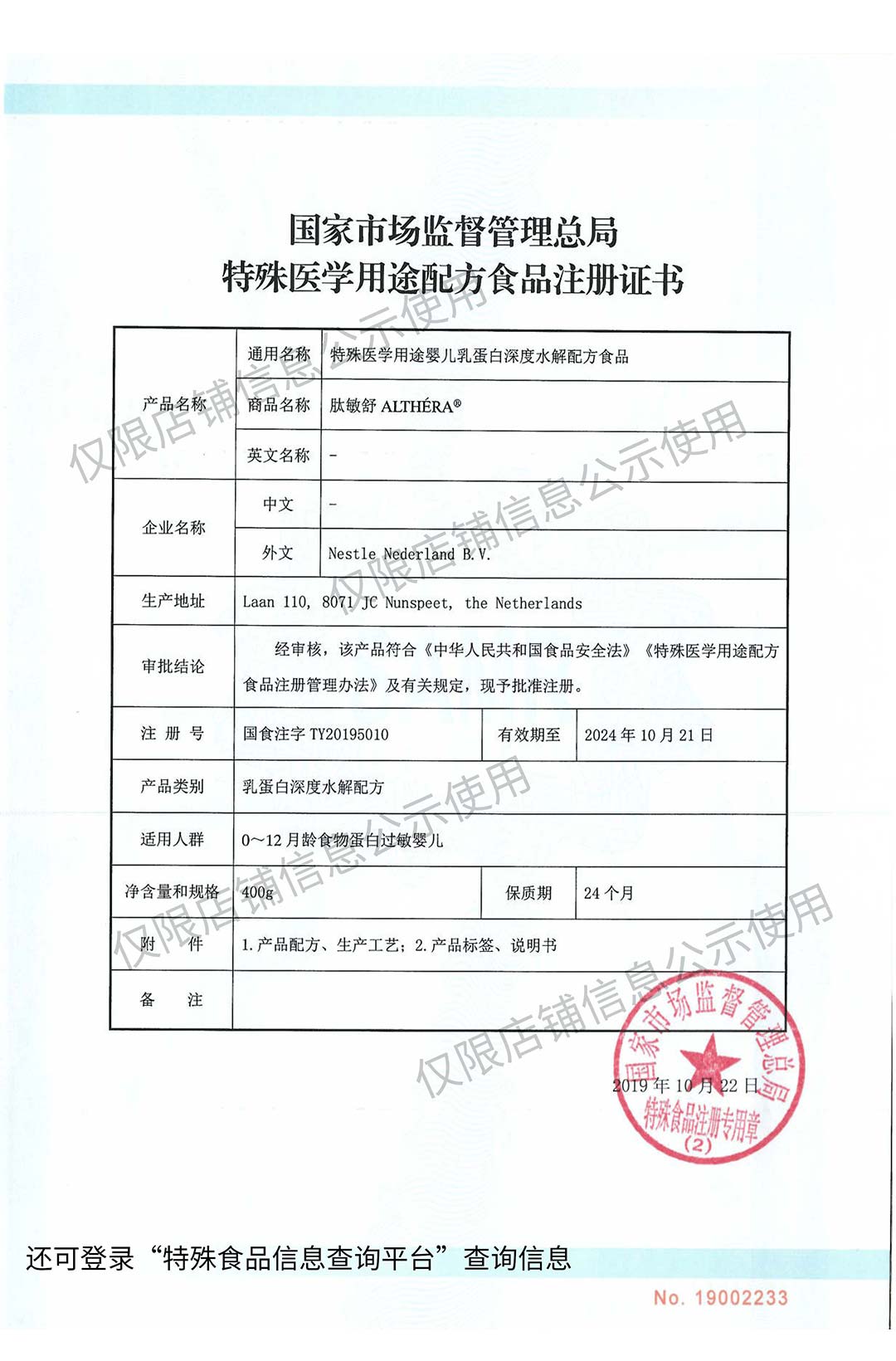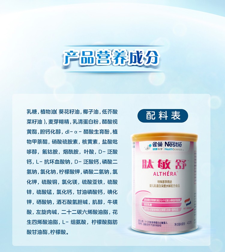 雀巢肽敏舒特殊医学用途婴儿配方食品0-12月龄400克