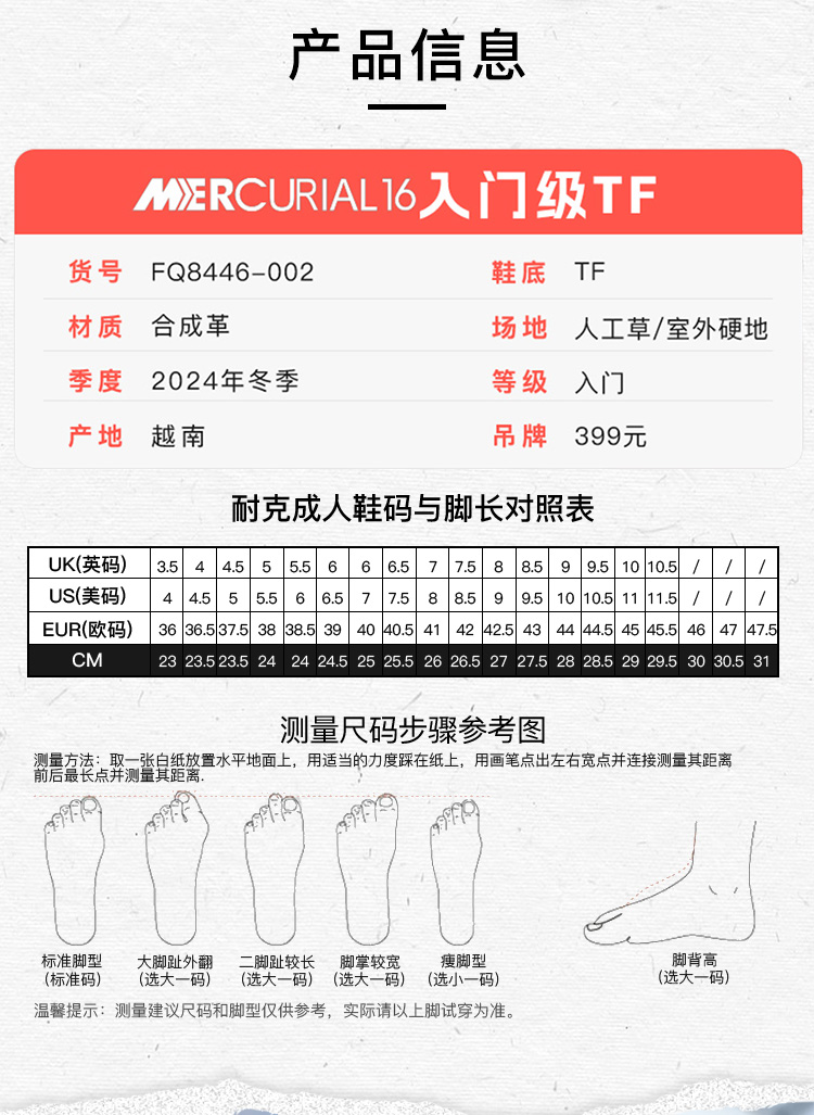 NIKE耐克刺客16入门级TF碎钉成人足球鞋男FQ8446-002