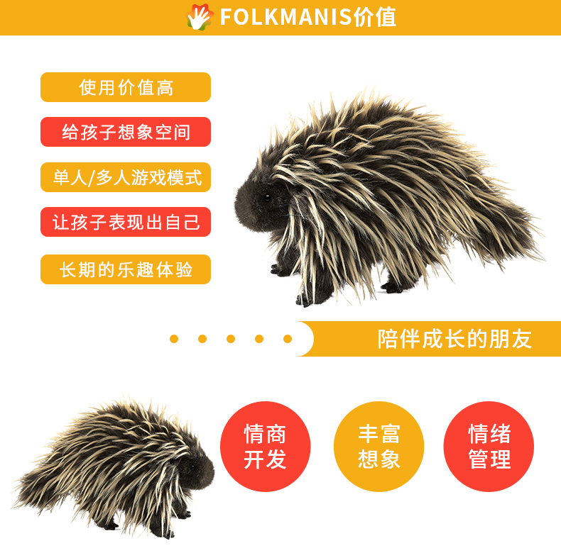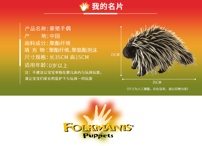 Folkmanis Puppets豪猪玩具/2378玩偶毛绒玩具礼物