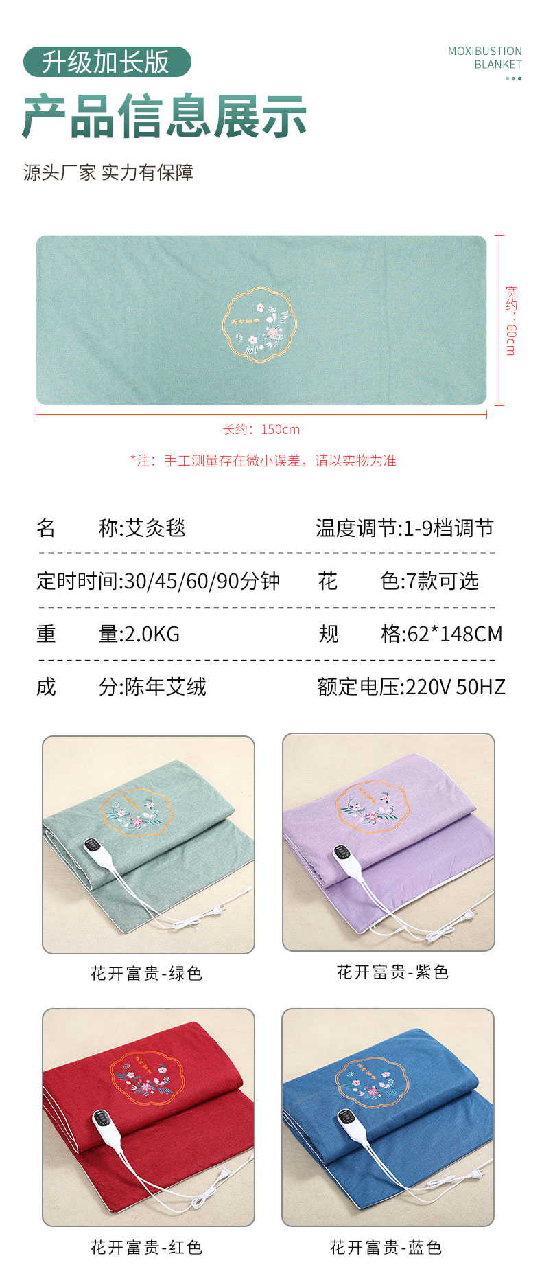 电加热艾绒垫艾灸艾草床垫褥子全身灸家用艾灸毯热敷养身理疗包
