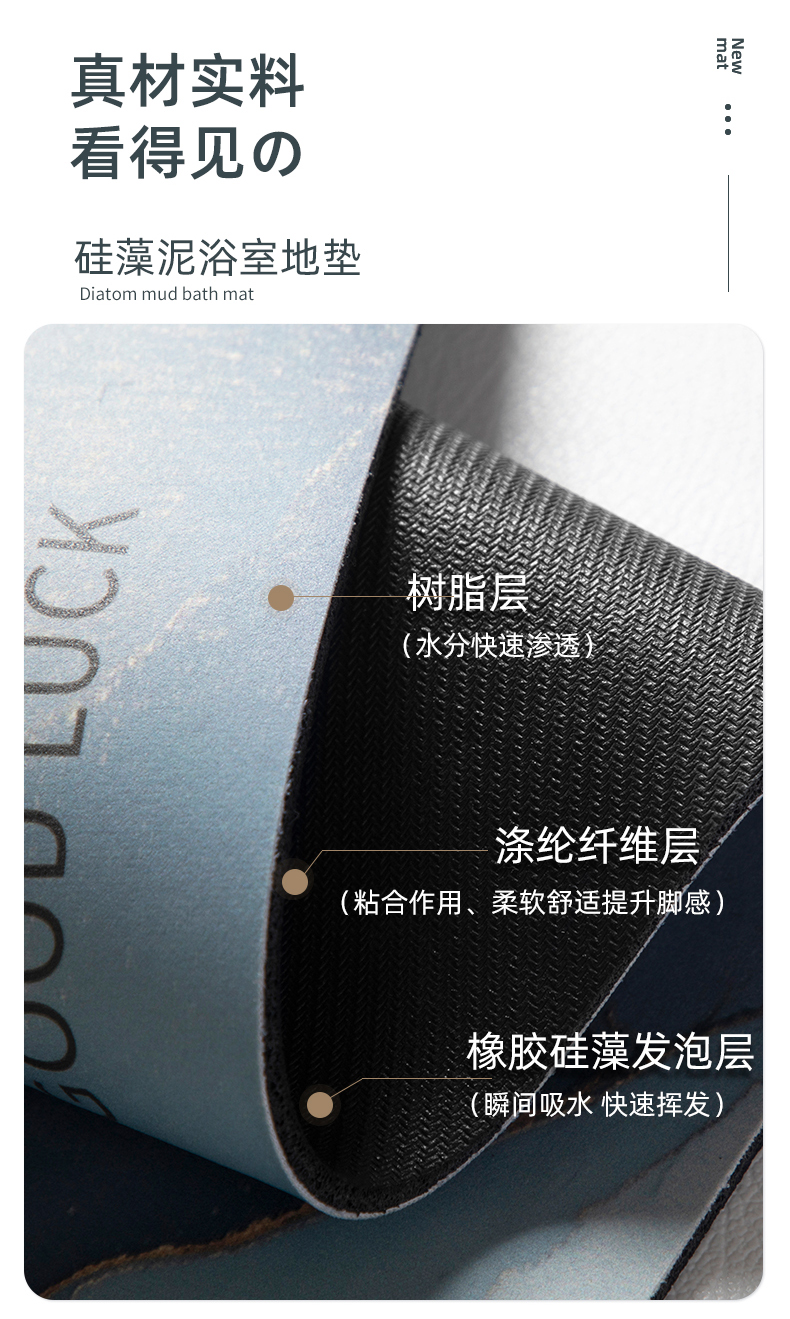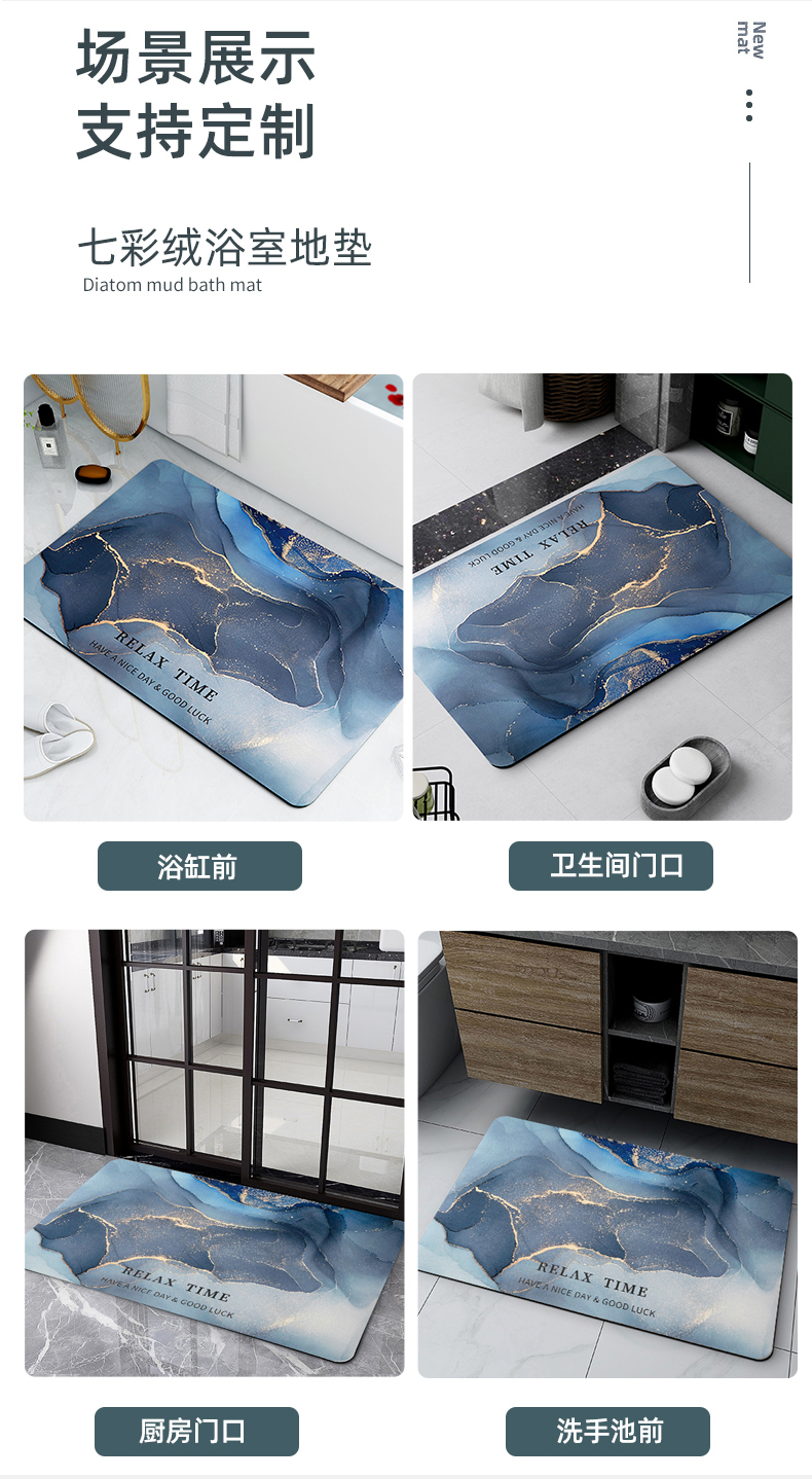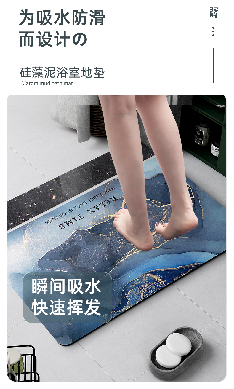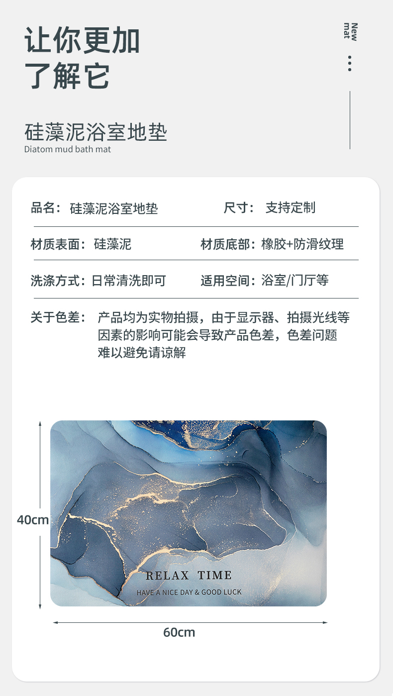 南柯一梦系列硅藻泥地垫浴室吸水脚垫防滑速干卫生间淋浴房门口垫子 40*60cm