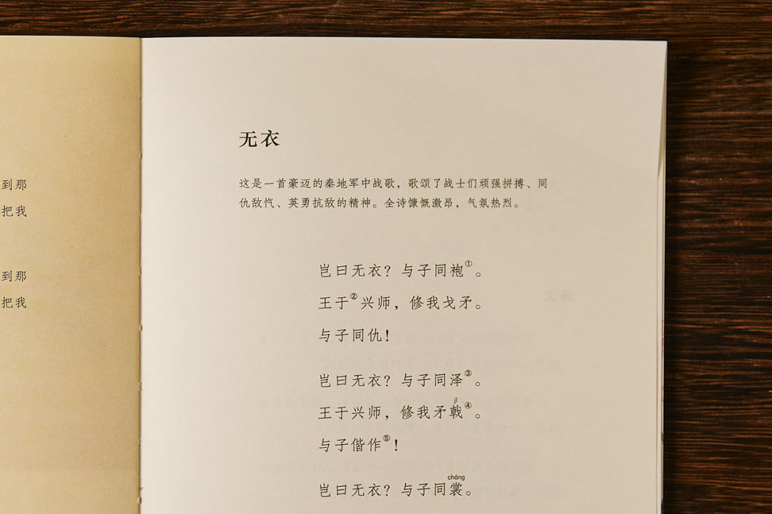 没有比《桃夭》更适合祝福新婚女子的诗:“之子于归,宜其室家”。 中国“万古送别诗之祖”《燕燕》:“燕燕于飞,差池其羽”。 夸赞女子的最佳诗篇《硕人》:“手如柔荑,肤如凝脂”。 秦朝出征前必唱战歌《无衣》:“岂曰无衣,与子同袍”。