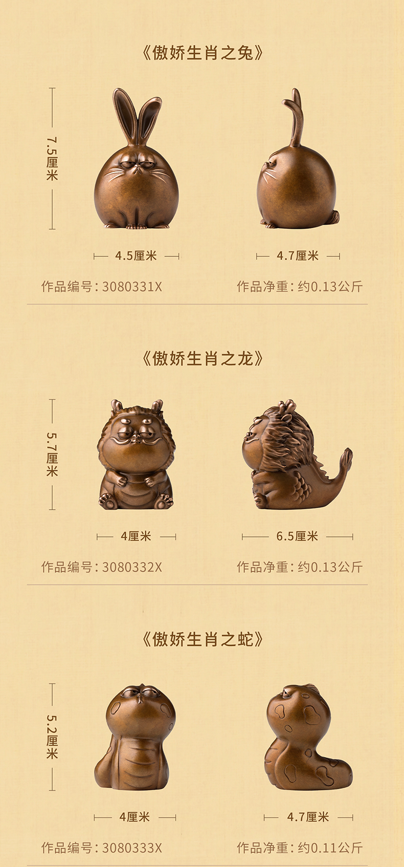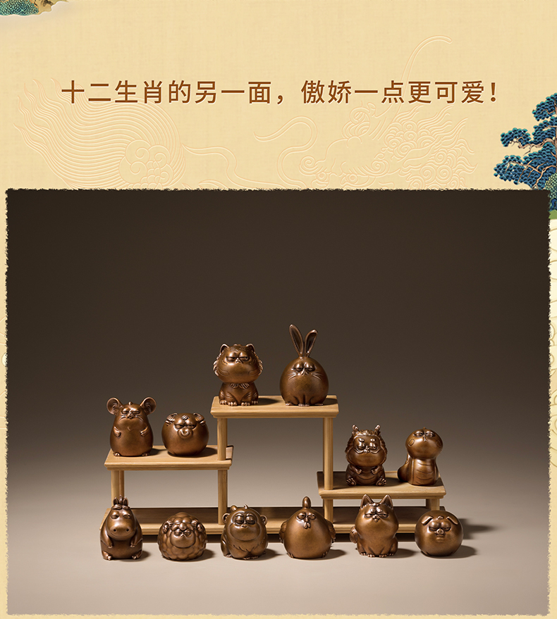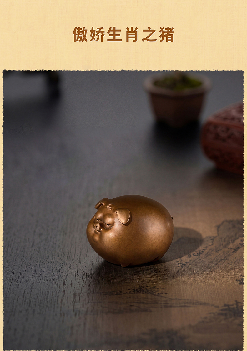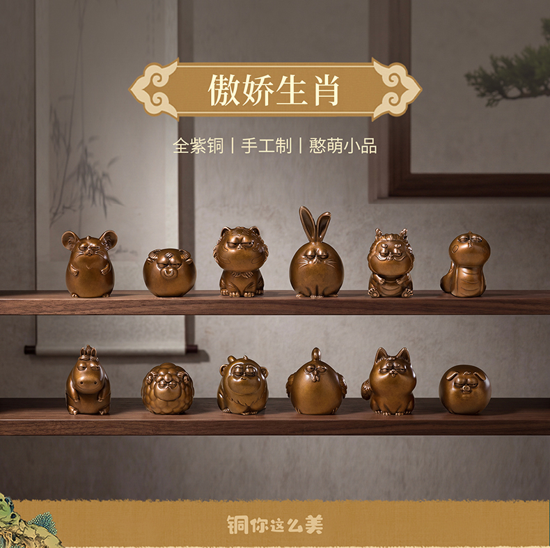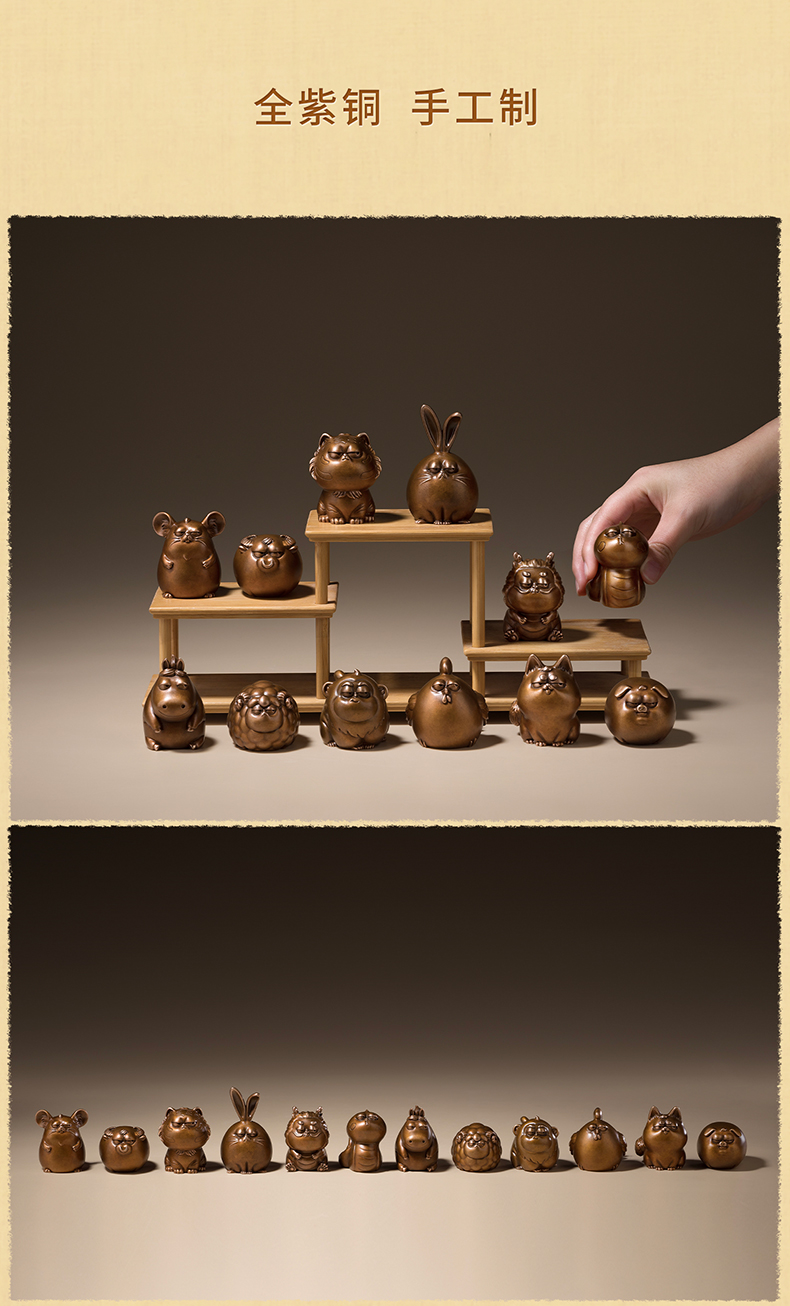 铜师傅《傲娇十二生肖》桌面创意生肖吉祥物紫铜摆件 家居装饰品