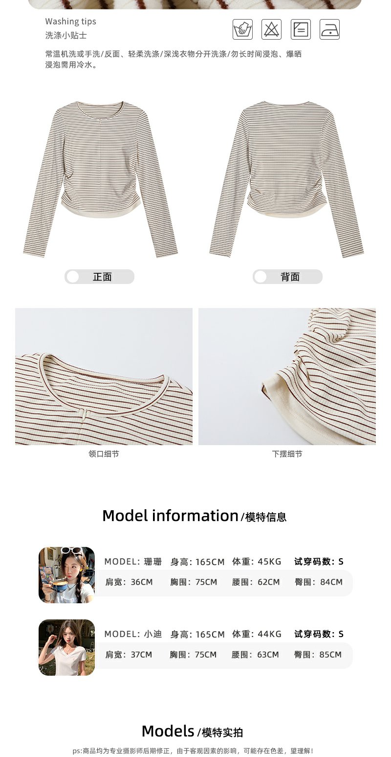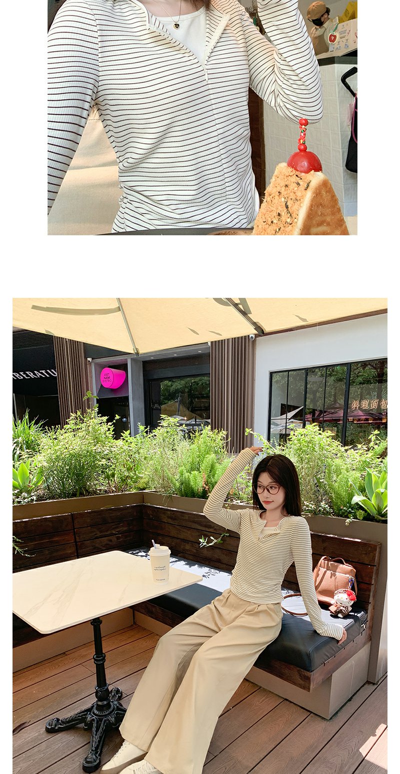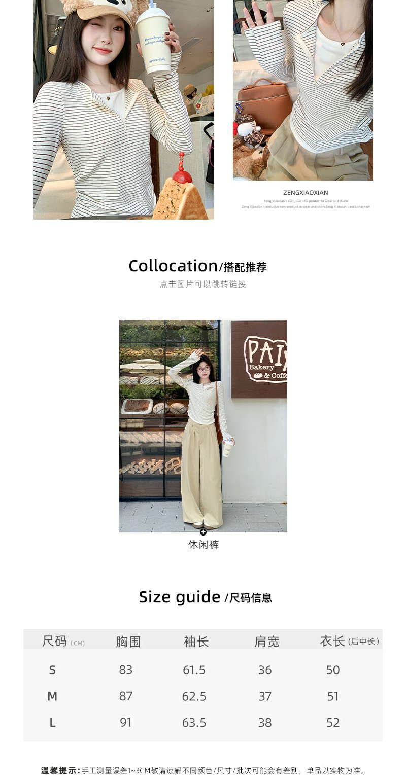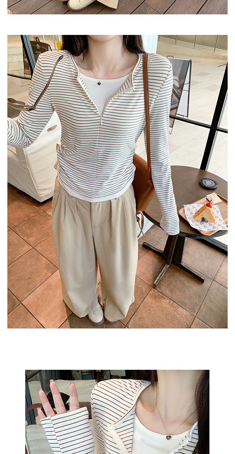 <曾小咸推荐>韩版拉链条纹长袖T恤【预售款,预计3-15天发货】