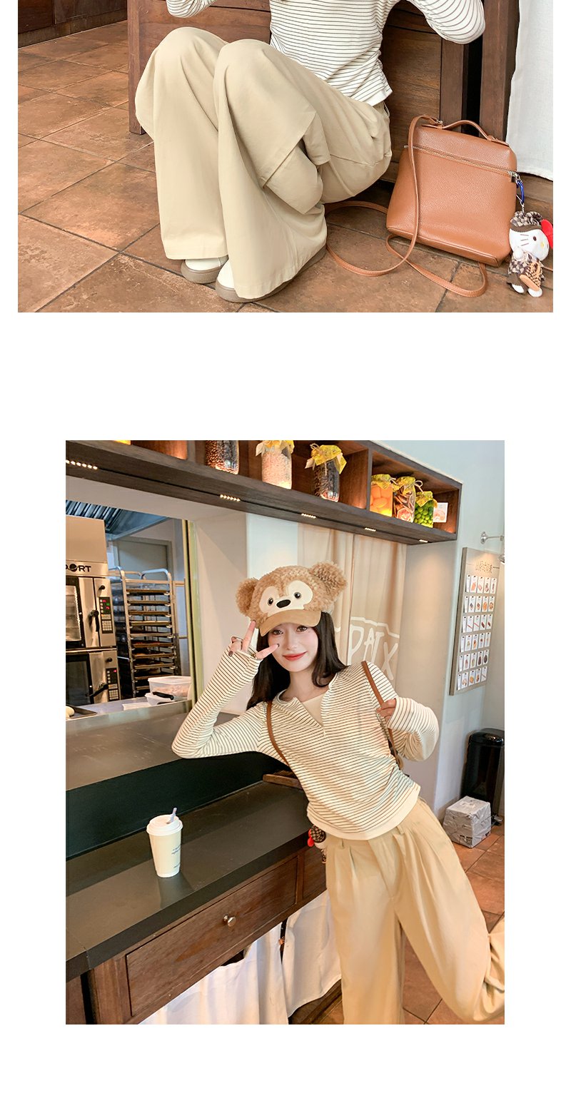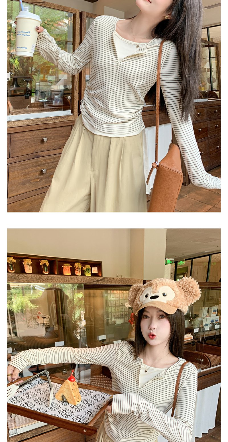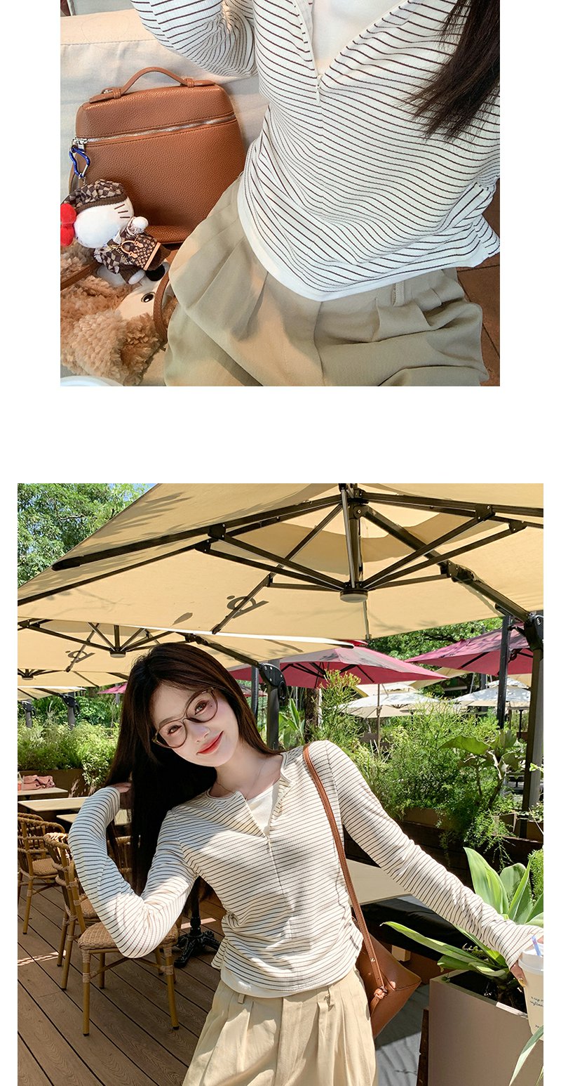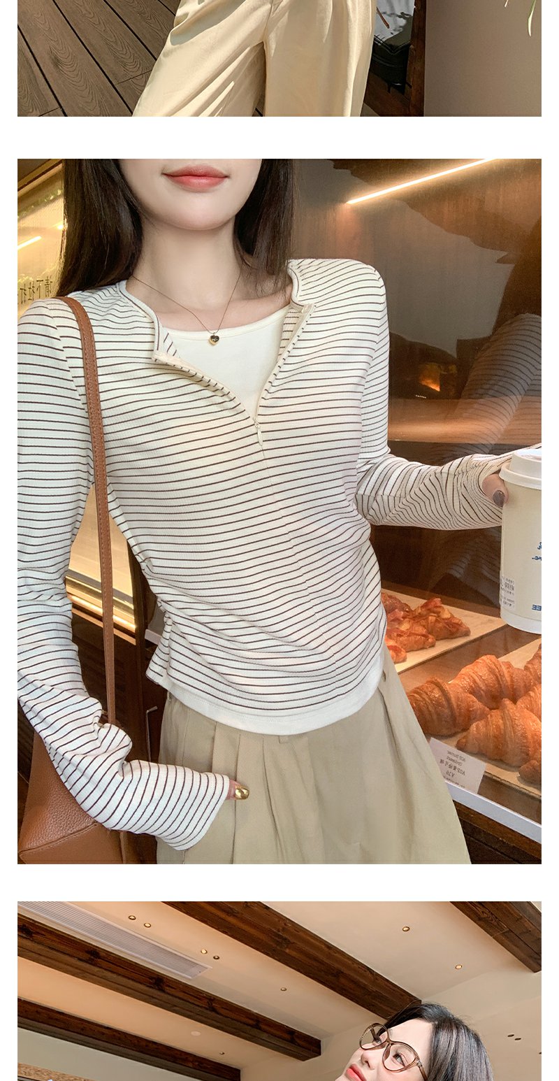 <曾小咸推荐>韩版拉链条纹长袖T恤【预售款,预计3-15天发货】