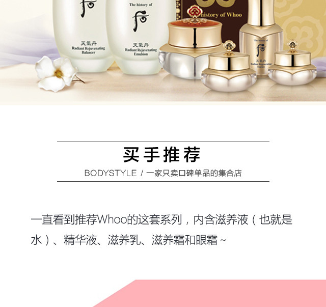 PS:WHOO套装含正装水乳霜,赠品由于批次不同,可能有不同的产品。