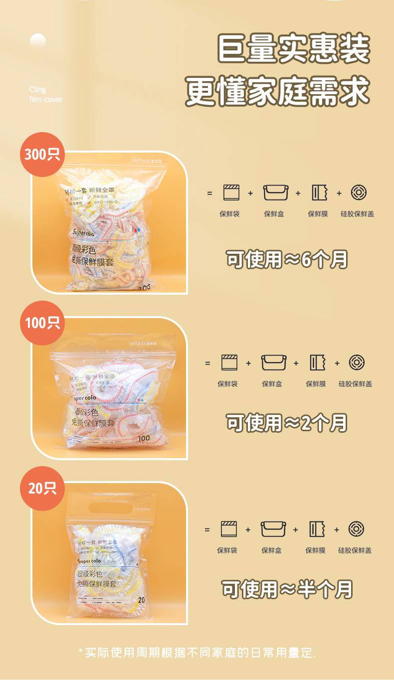 「9.9到手300只!大袋装」一次性保鲜膜套 食品冰箱保鲜盖罩防尘锁水可冷冻加热保鲜膜厨房用品