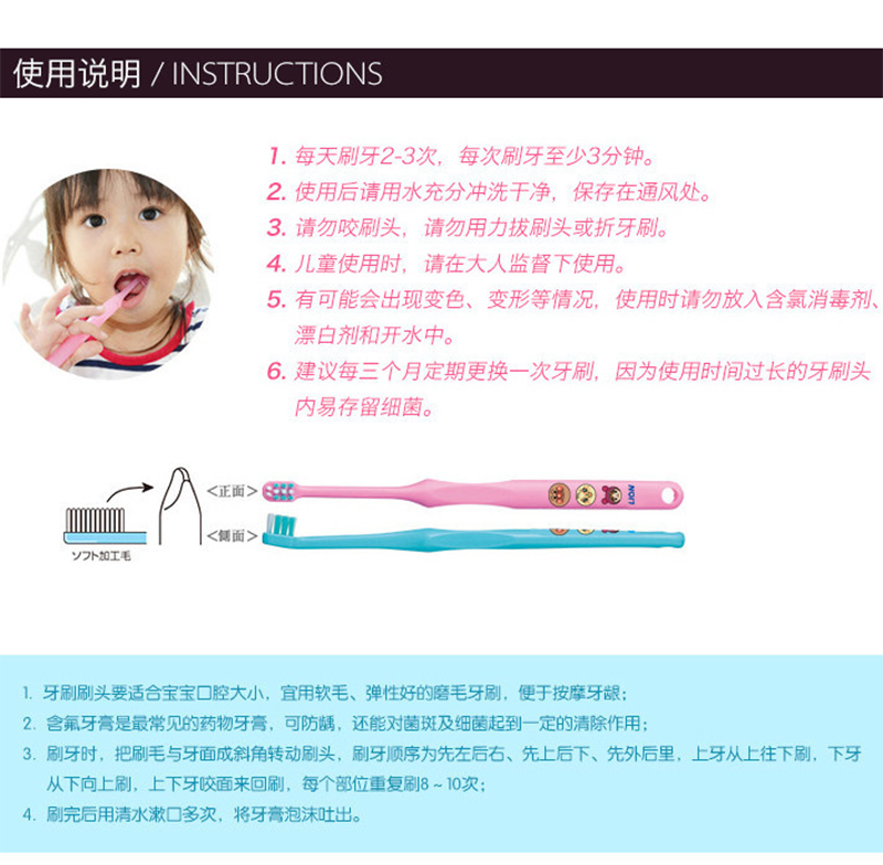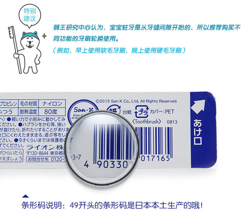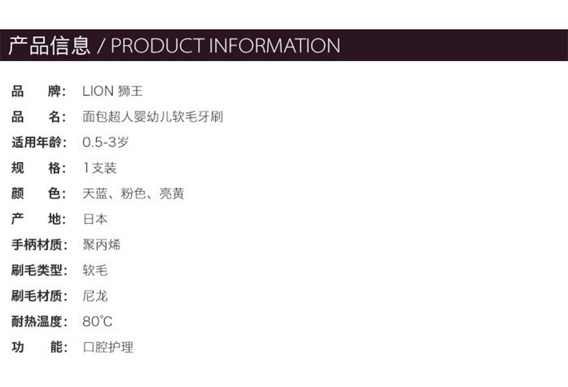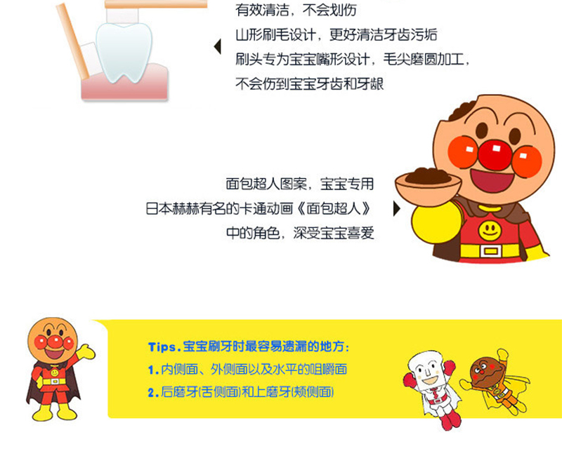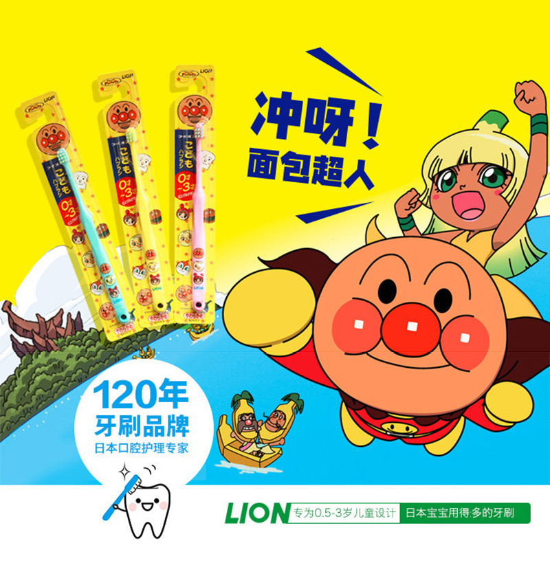 日本狮王Lion 面包超人儿童牙刷0~3岁