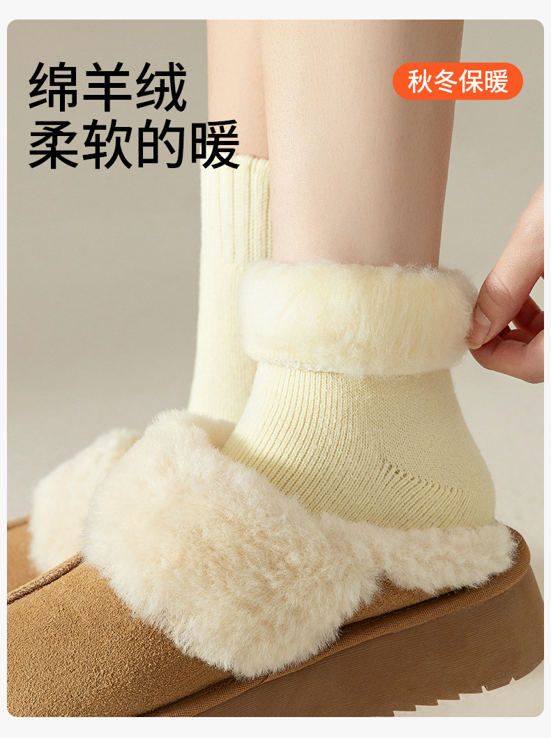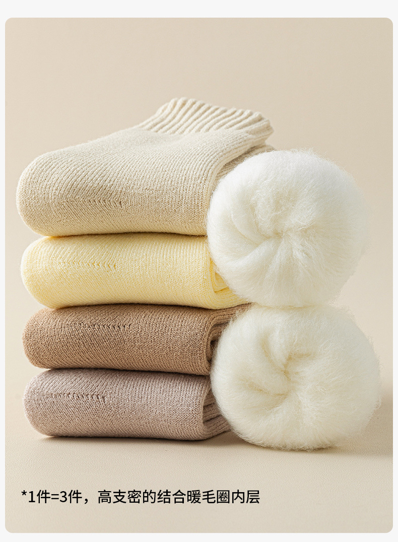 「加厚羊绒袜!三双装」袜子女秋冬加厚袜子加绒保暖毛圈羊毛袜女士中筒袜羊绒地板袜配饰