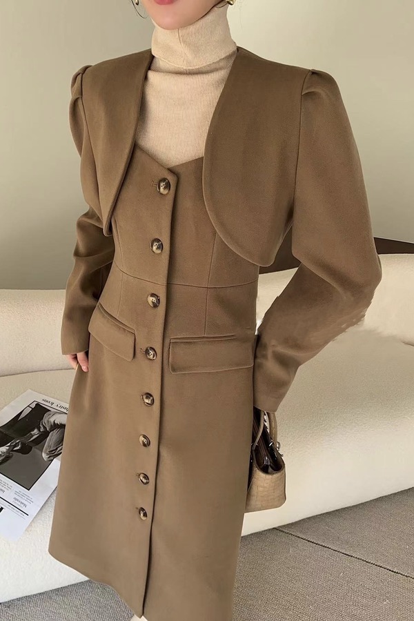 Le Malene 精致纽扣装饰V领开衫外套 11532