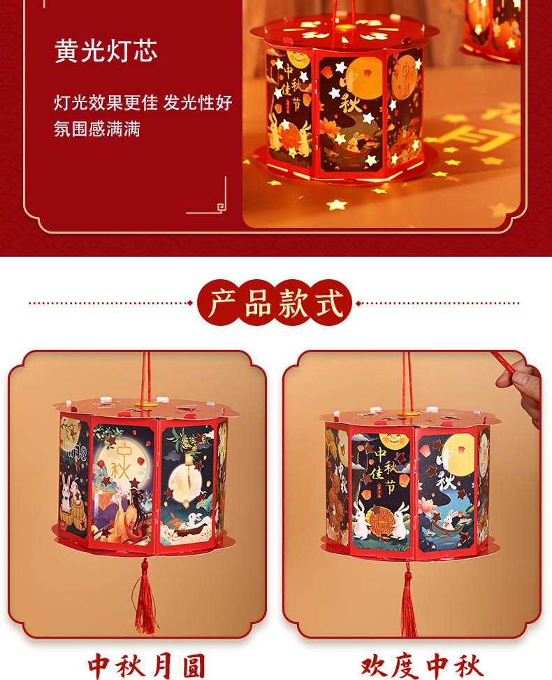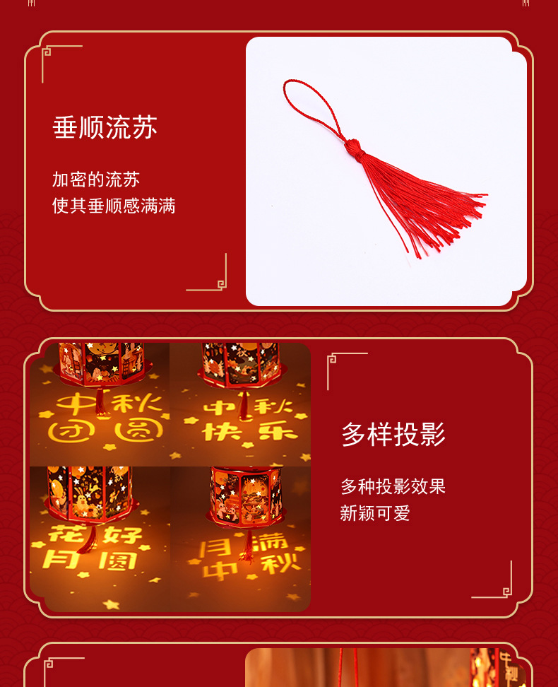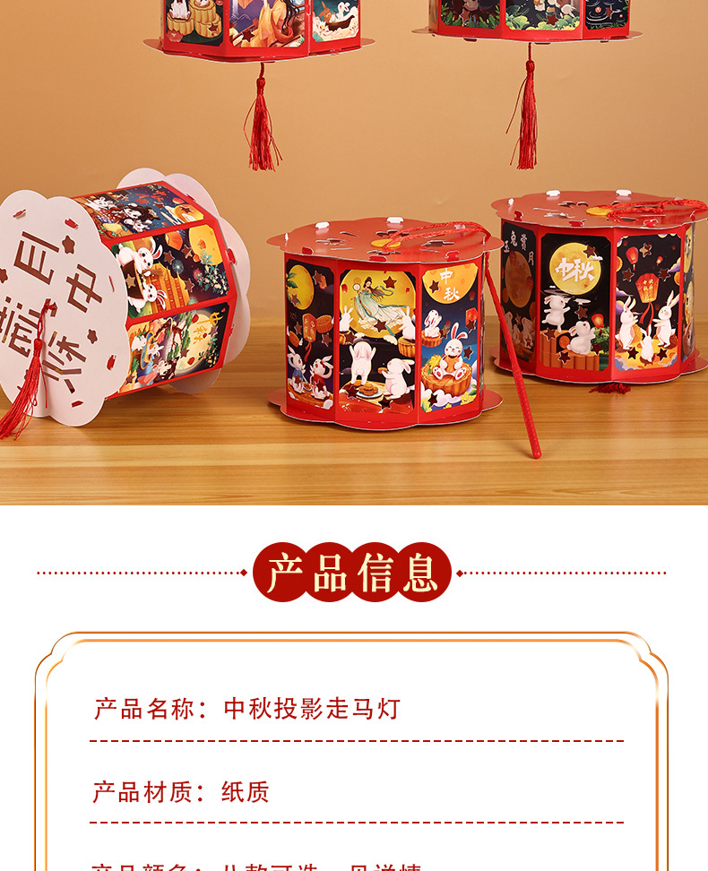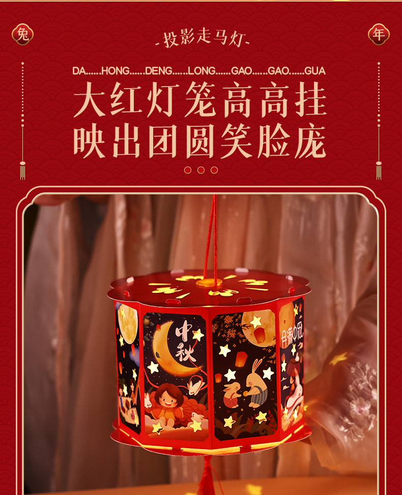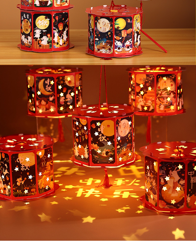 送同款【中秋佳节,赠礼有心】投影走马灯笼带你重温传统华美;手提灯夜市发光,惊艳夜空;宫灯小花灯DIY材料包,创意无限;让我们一起点亮中秋团圆的喜悦之光!