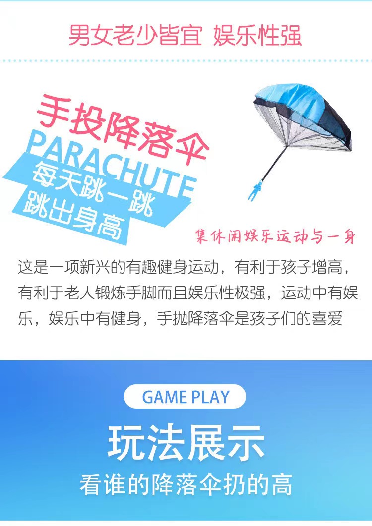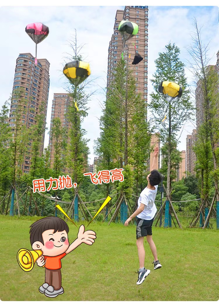 手抛降落伞玩法很简单,只要随便捆一下,尽可能用力往上拋,小小降落伞🪂就会随风落下来!