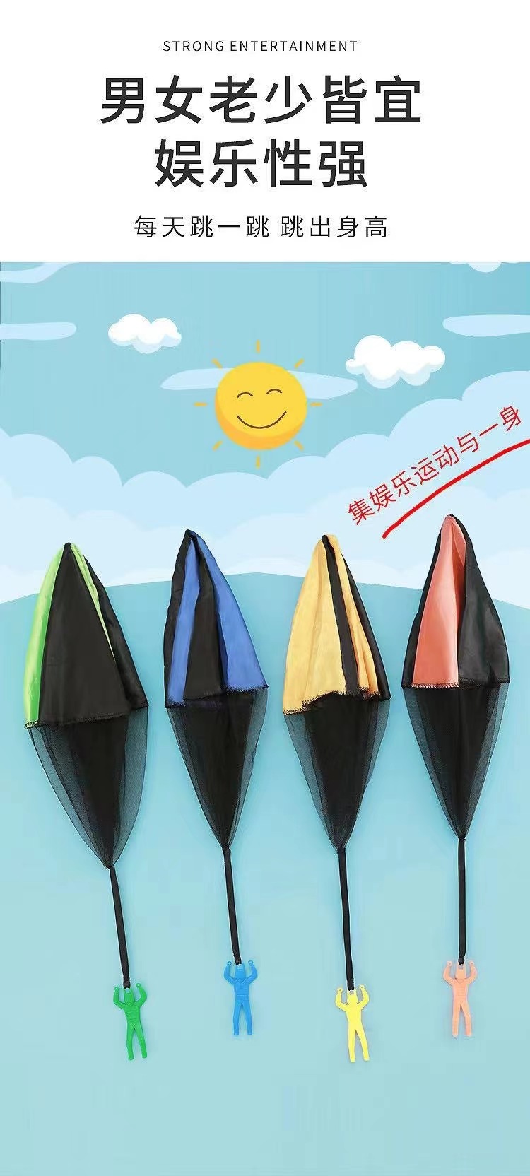 每款降落伞是不同颜色的,都悬挂着一个小小人哦😀