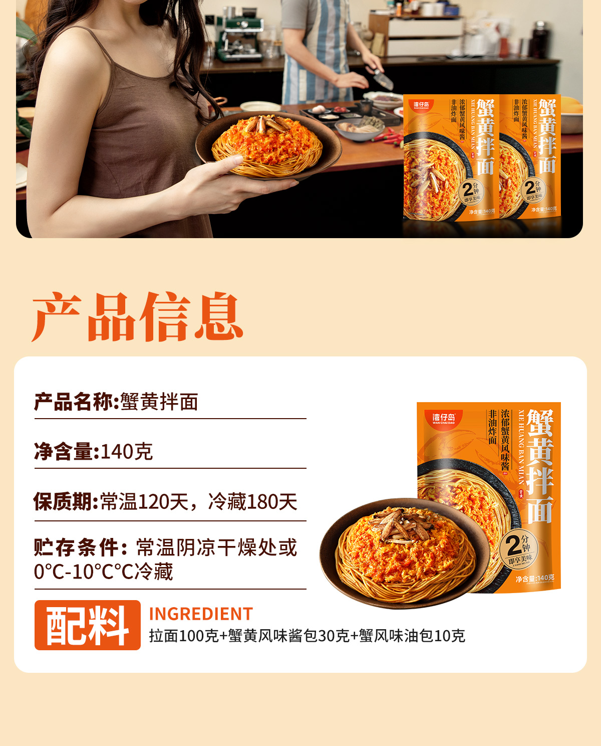 【直发】湾仔岛蟹黄拌面140g*4袋