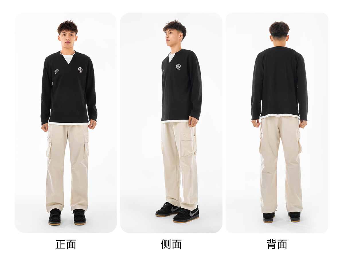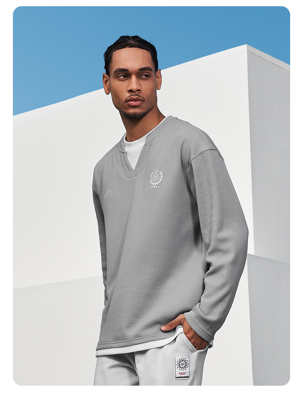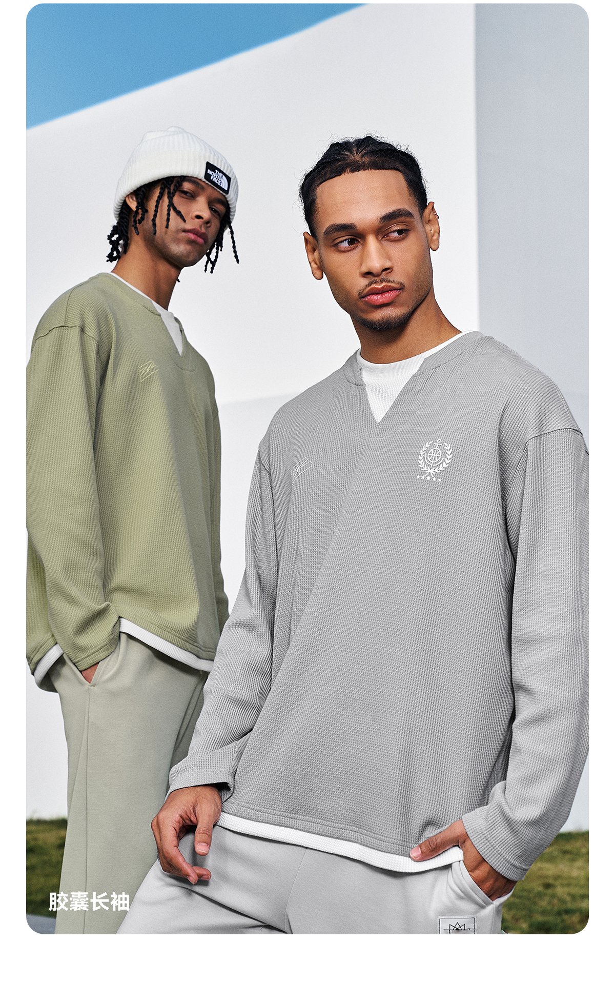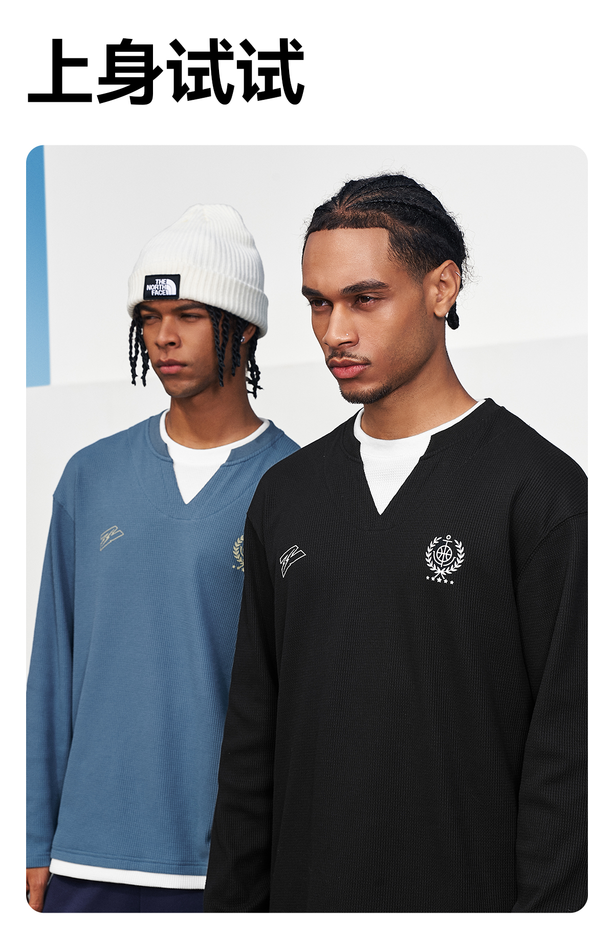 有志者UZIS美式休闲运动长袖男2025新款宽松假两件针织打底衫【胶囊】