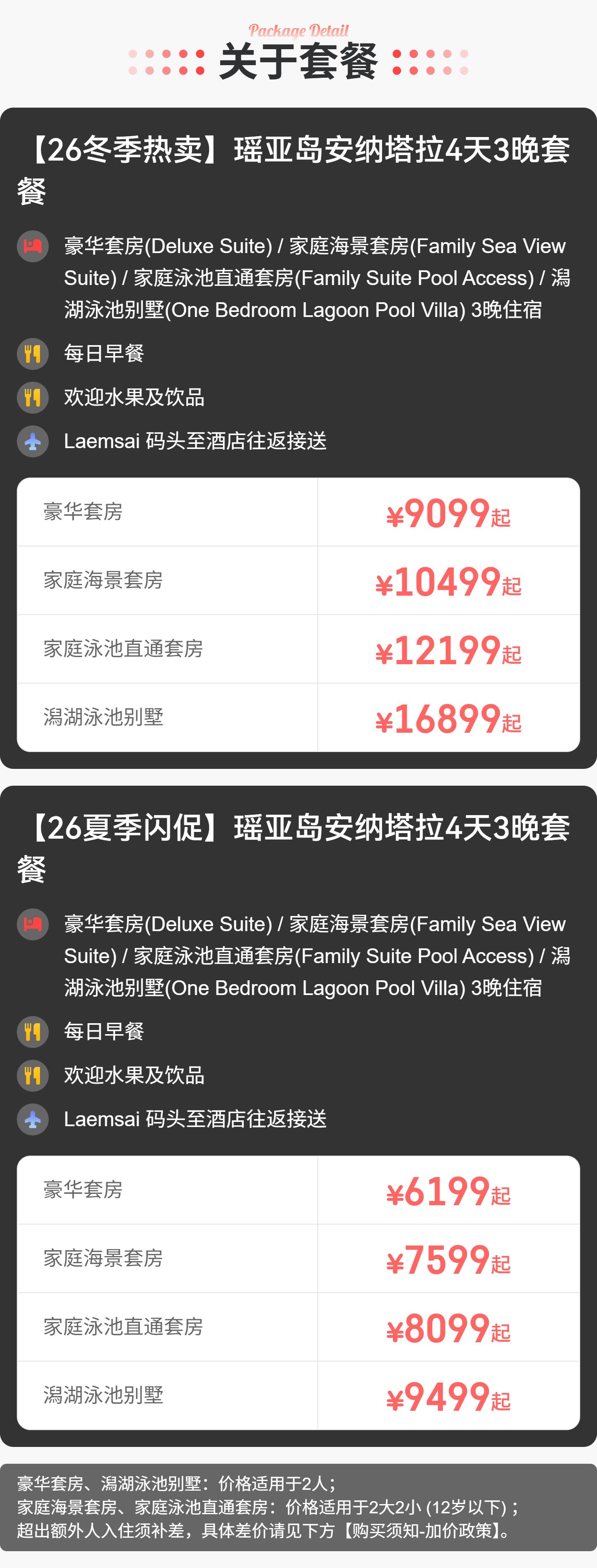4天3晚【普吉岛瑶亚岛安纳塔拉(大长岛)】入住90㎡豪华海景套房,享码头接送、每日早餐、欢迎水果及饮品,更有家庭房及170㎡泳池别墅套餐,打卡瑶亚岛的安逸与悠闲!~