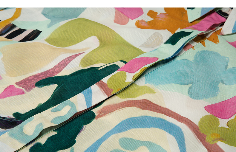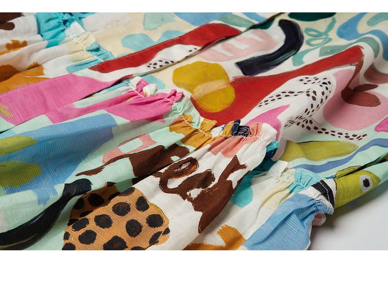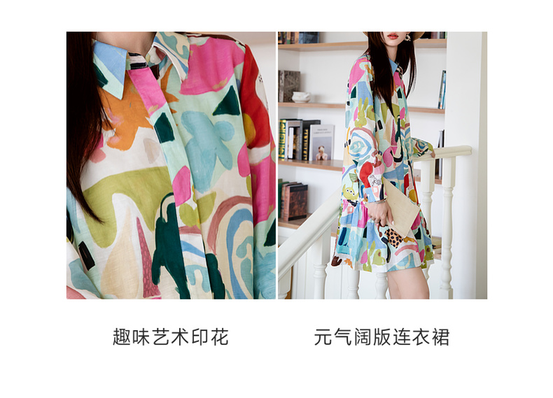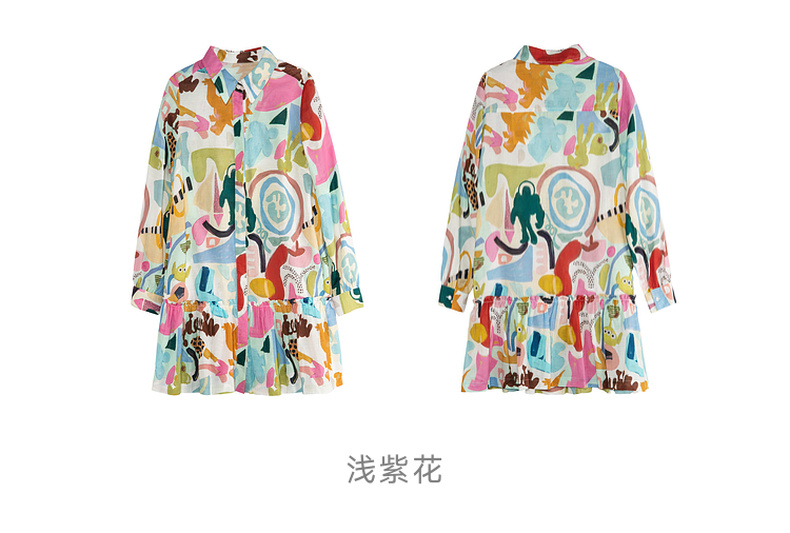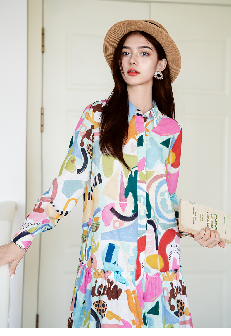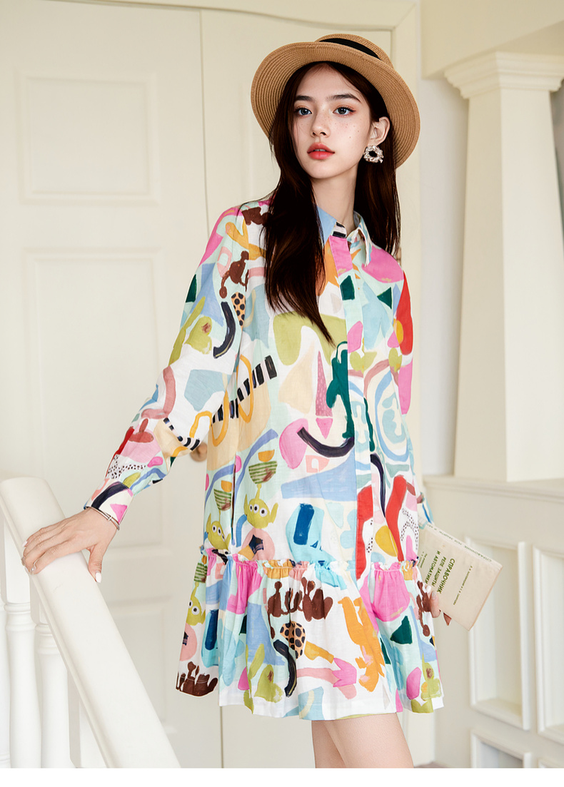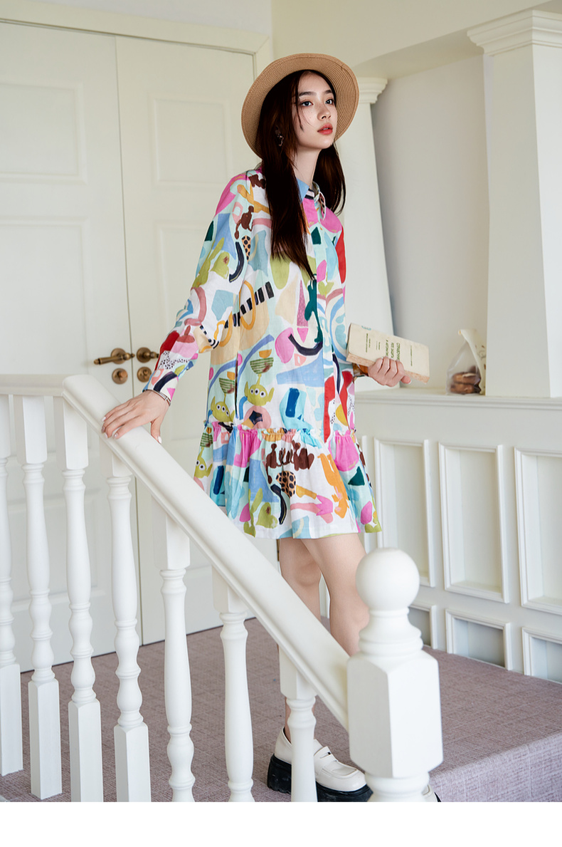 谜底印花连衣裙长袖2025秋新款复古百搭荷叶边下摆短裙257ML7831
