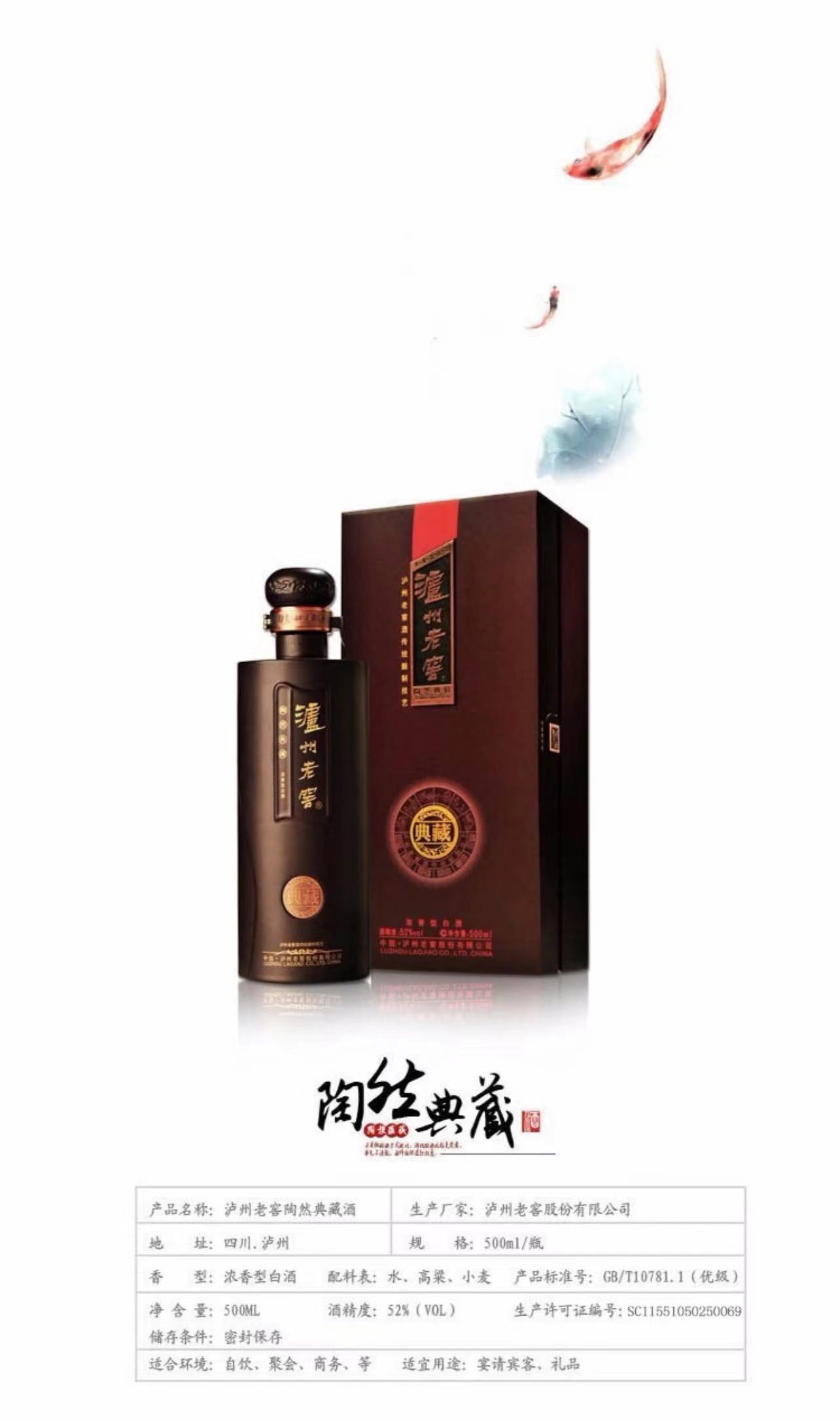 【自营】泸州老窖 陶然典藏 52度 浓香型白酒 过节送礼宴请接待 家庭聚会 高端商务酒 500ml*2瓶装/整箱装