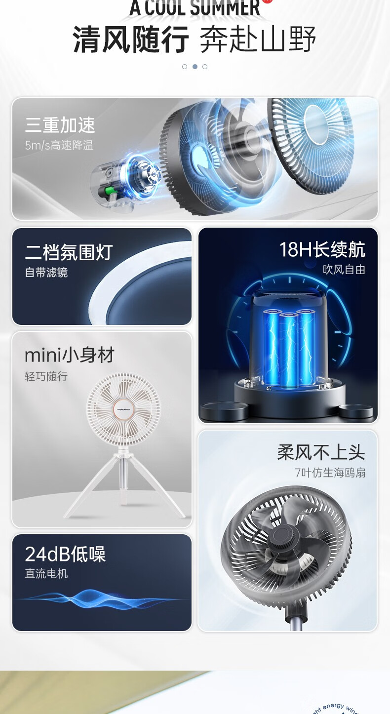【小家电】摩飞 无线便携电风扇 MR3701 HF