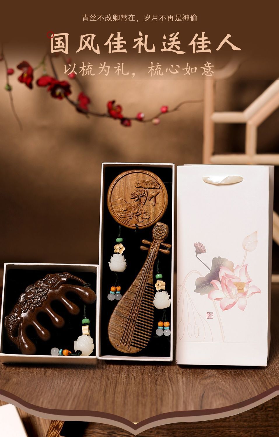 【檀木梳子礼盒】古风梳子精致伴手礼 母亲节礼物生日礼盒中国风实用纪念礼物