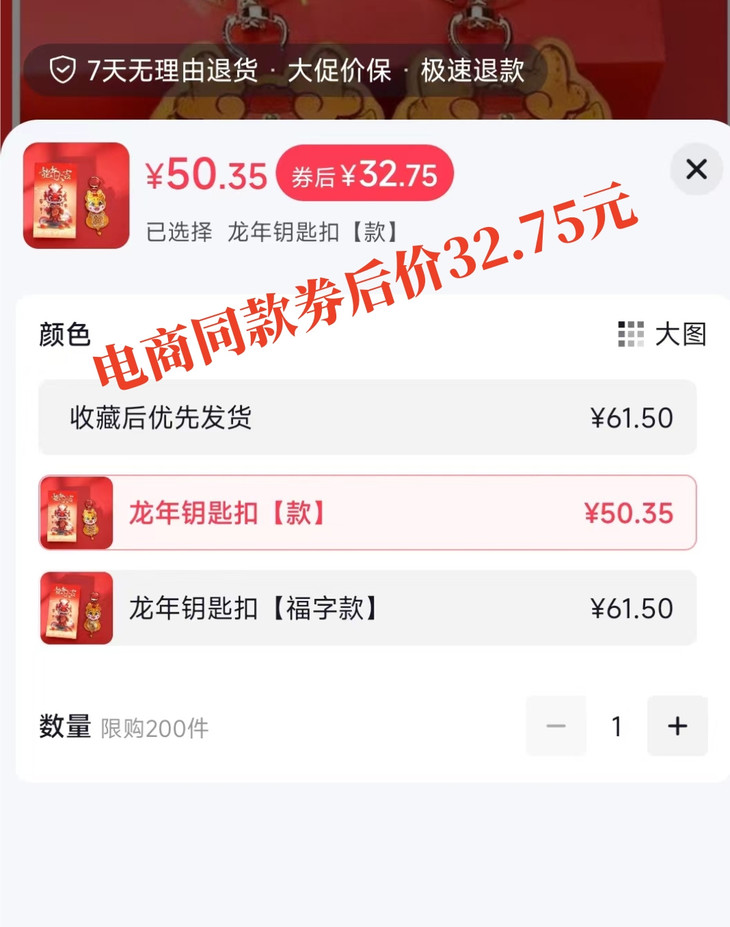 【团品名称】生肖黄金钥匙扣 【发货时效】【发货时效】72h左右浙江发货(如遇爆单排单顺延发货) 【物流说明】西藏、新疆不发货,北上+1 【售后说明】1.团购商品非质量问题不支持退换;2.易碎物品,质量问题签收24小时内提供物品和面单照片反馈客服处理;3.快递送货外观有严重破损的请拒收;4.随机赠品不在售后范围内。5、有轻微掉毛是正常现象,介意勿拍 特别提醒:物流异常问题,比如无信息更新、退件等,请于发货后1个月内反馈,超过1个月不做处理!