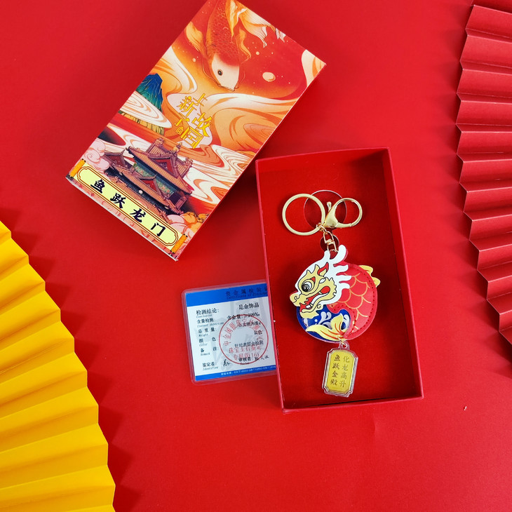 包装精美礼盒+鉴定书 自带或送礼都有面子,三个款式任你挑选 百年故宫🐲文创当兴 🧧 新国潮鱼跃龙门典故 龙子螭吻形象 故宫太和殿🧨事业有成 化龙高升的寓意🐲 一款高端大气上档次钥匙扣