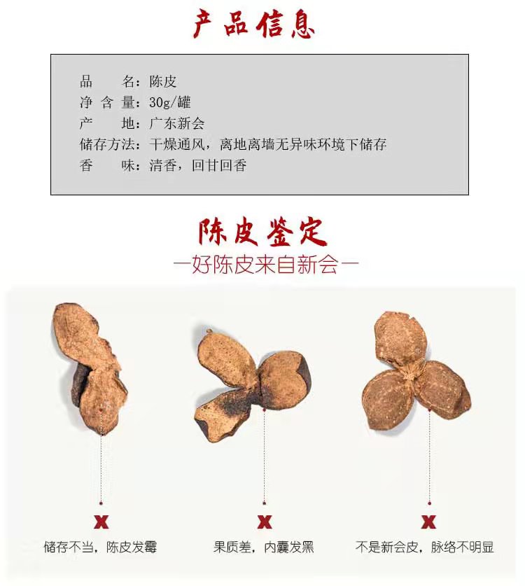 抱拙堂 新会道地年份陈皮 2018年优质产区 日用收藏,罐装30g