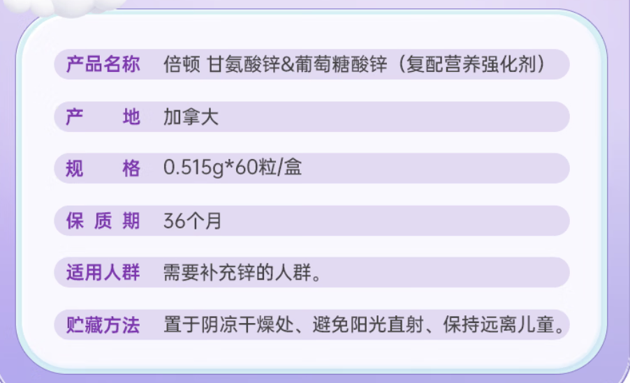 倍顿甘氨酸锌宝宝儿童补锌60粒