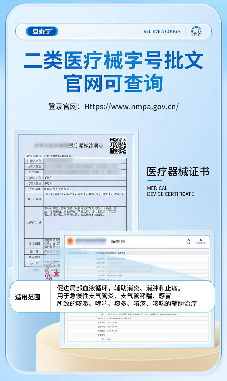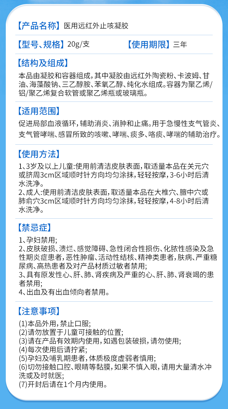 安泰宁医用远红外止咳凝胶适用急慢性支气管炎感冒咳嗽咽喉痰多
