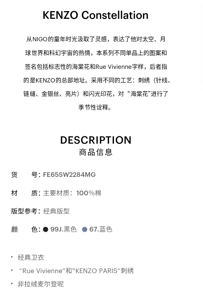 KENZO 套头卫衣男 FE65SW2284MG-67 BLUE.